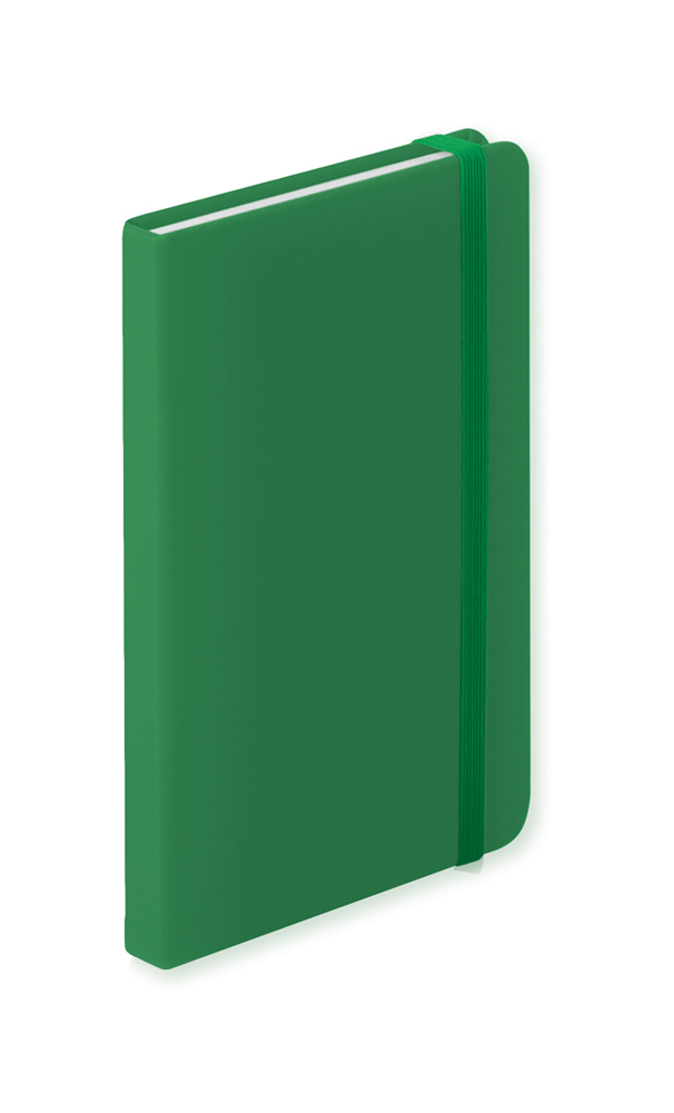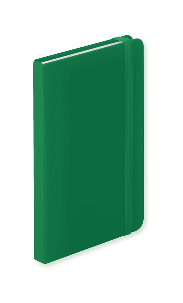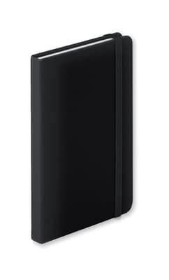 PU lederen notitieboek met 100 gelinieerde vellen en elastiek.