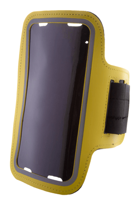 PU-lederen armband voor mobile telefoon met touch screen venster en reflecterende delen. Passend tot 6 inch scherm.