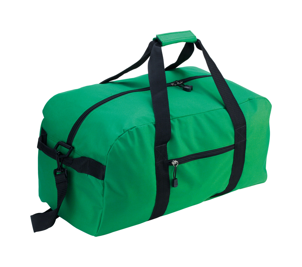 Sporttas met schouderband en zakken met rits. van 600D polyester.