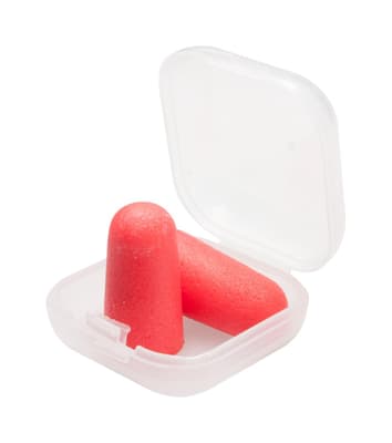 Gekleurde oordopjes in transparante plastic hoes. Materiaal: EVA.