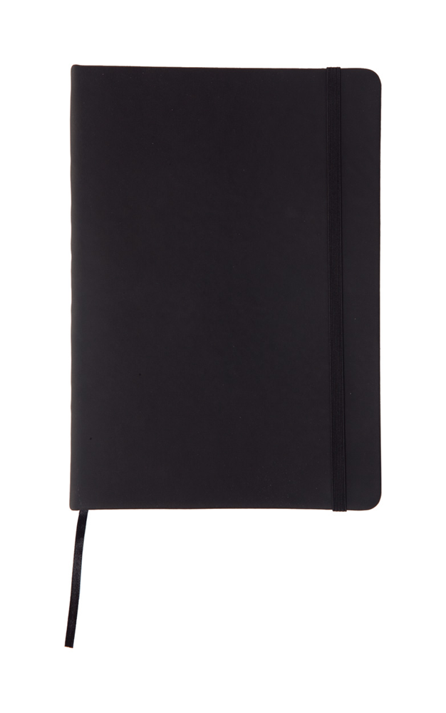 PU bekleed notitieboek met 100 pagina's zonder lijntjes. Met pagina marker en rubberen band.