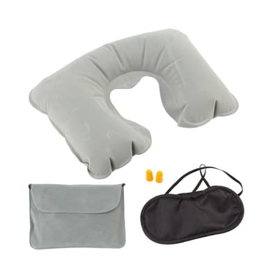 Reisset met opblaasbaar nekkussen, oogmasker en oordopjes. Dit artikel wordt in een bijpassende fluwelen hoes geleverd.