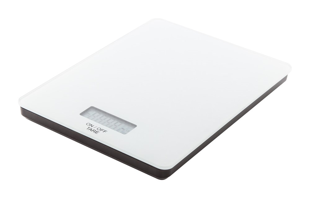 Digitale keukenweegschaal van gehard glas. Capaciteit, 5kg. Weegt met gradaties van 1 Gr. Meet eenheden g/oz. Werkt op 2 AAA batterijen, niet meegeleverd.