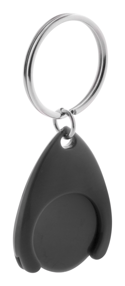 Plastic winkelwagenmuntenhouder met metalen sleutelhanger. Formaat munt: diam. 24×2 mm.