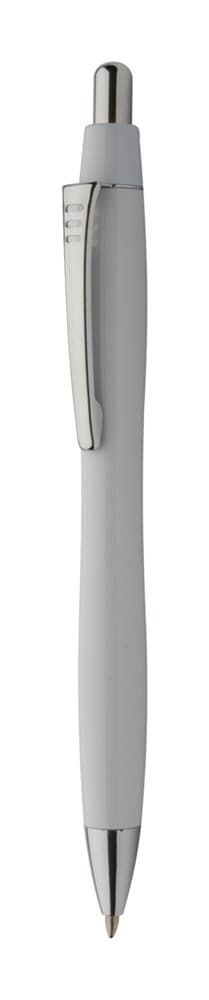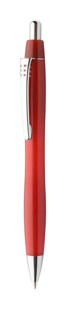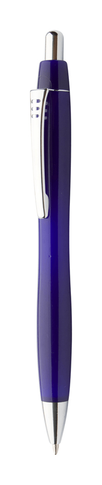 Plastic balpen met gekleurde schacht, metalen clip en chromen details. Blauw schrijvend.