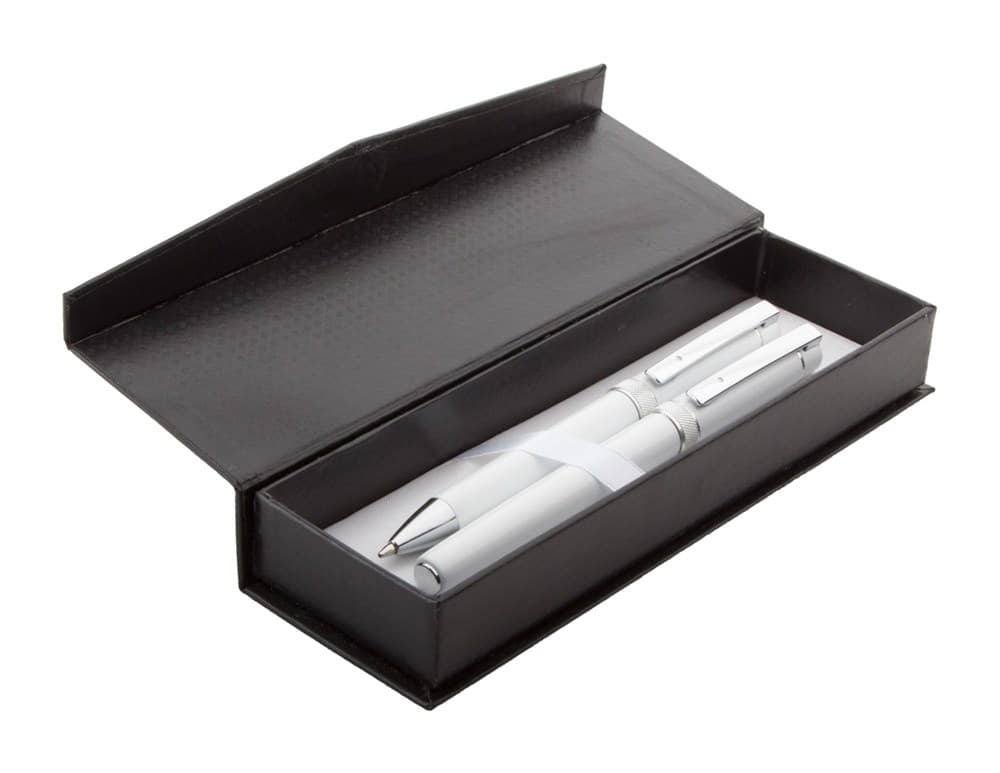 Aluminium bal pen met modern design in geschenkverpakking. Blauw schrijvend.
