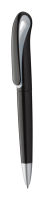 Trendy plastic balpen met gepolijste gekleurde schacht en zilveren tip. Blauw schrijvend.