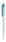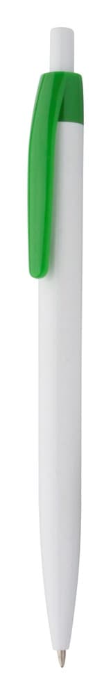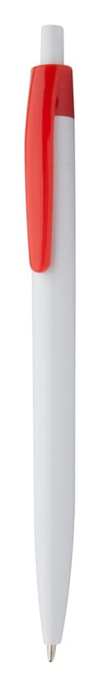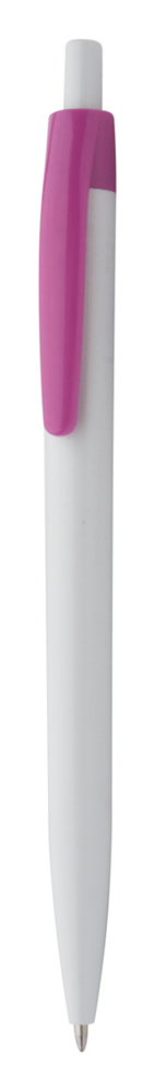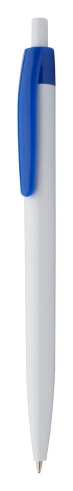 Witte plastic balpen met gekleurde clip. Blauw schrijvend.