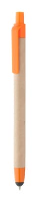 Gerecyclede papieren balpen met touchscreen tip en gekleurde plastic clip en tip. Blauw schrijvend.