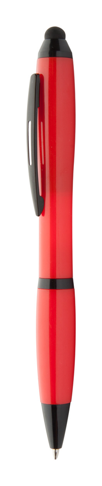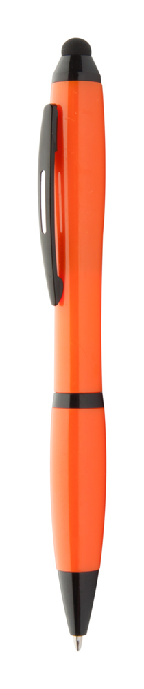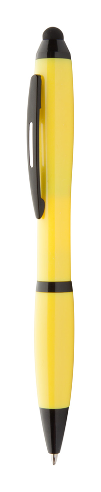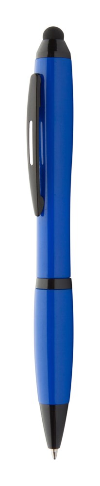 Plastic balpen met touch screen gedeelte. Gekleurde huls en grip met zwarte accenten. Blauw schrijvend.