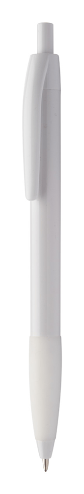 Plastic balpen met gekleurde rubberen grip. Blauw schrijvend.