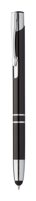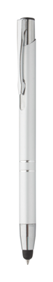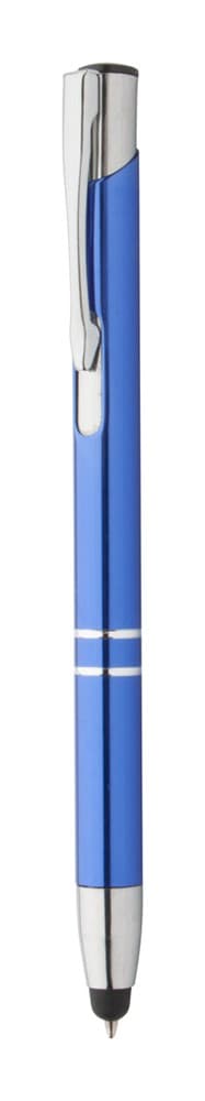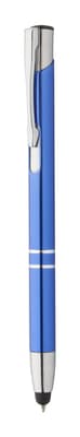 Aluminium balpen met touchscreen tip. Blauw schrijvend.