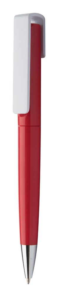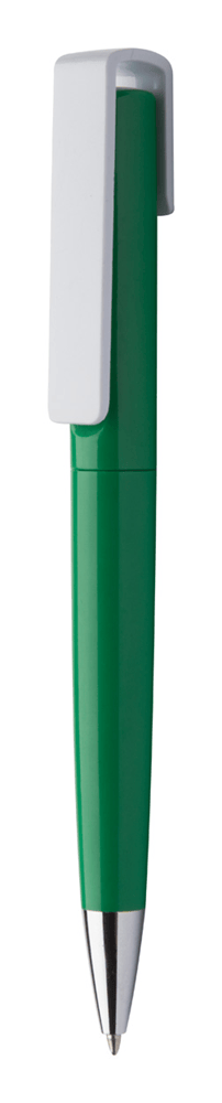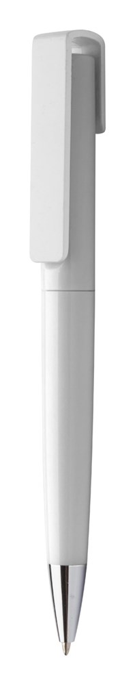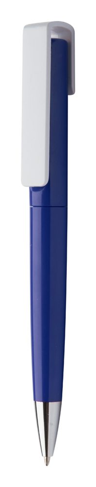 Plastic draai-balpen met grote, te bedrukken clip. Blauw schrijvend.