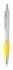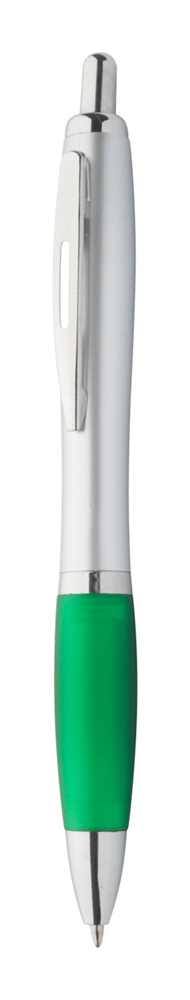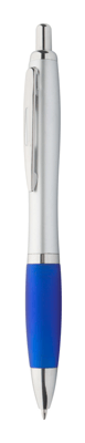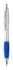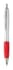 Plastic zilveren balpen met gekleurde rubberen handvat. Zwart schrijvend.