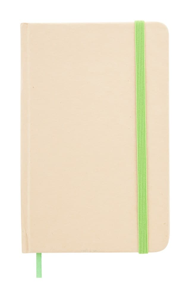 A6 formaat schrijfblok van gerecycled papier 80 blanco pagina`s, boekenlegger en moderne sluiting.