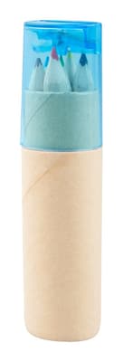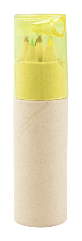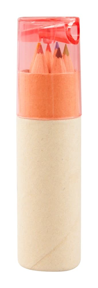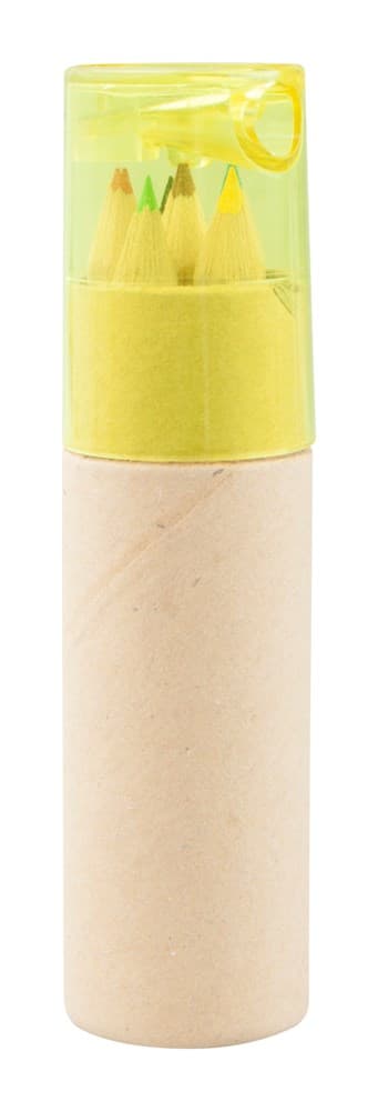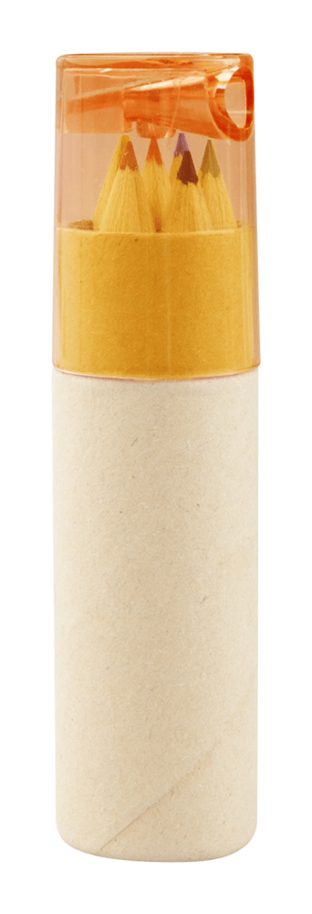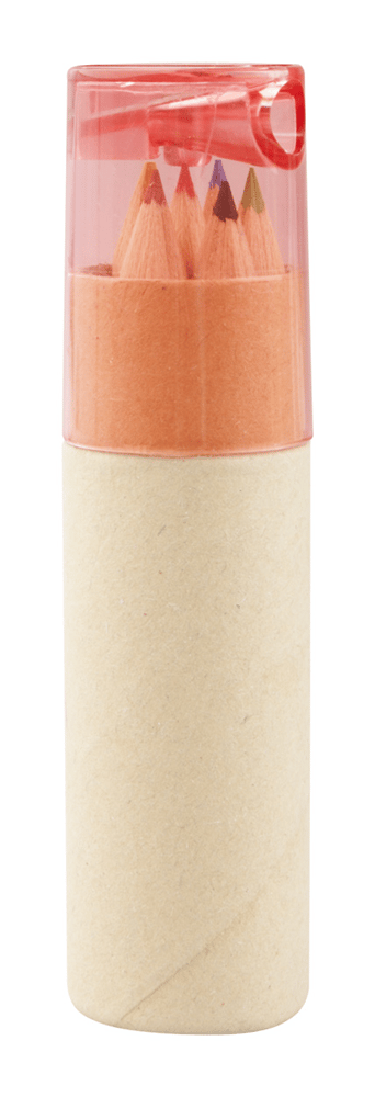 6 mini potloden in een kartonnen koker met puntenslijper in de dop.