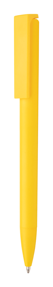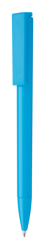 Plastic balpen met speciale beweegbare clip. Blauw schrijvend.