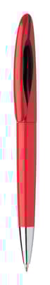 Plastic draai balpen met chromen tip. Blauw schrijvend.
