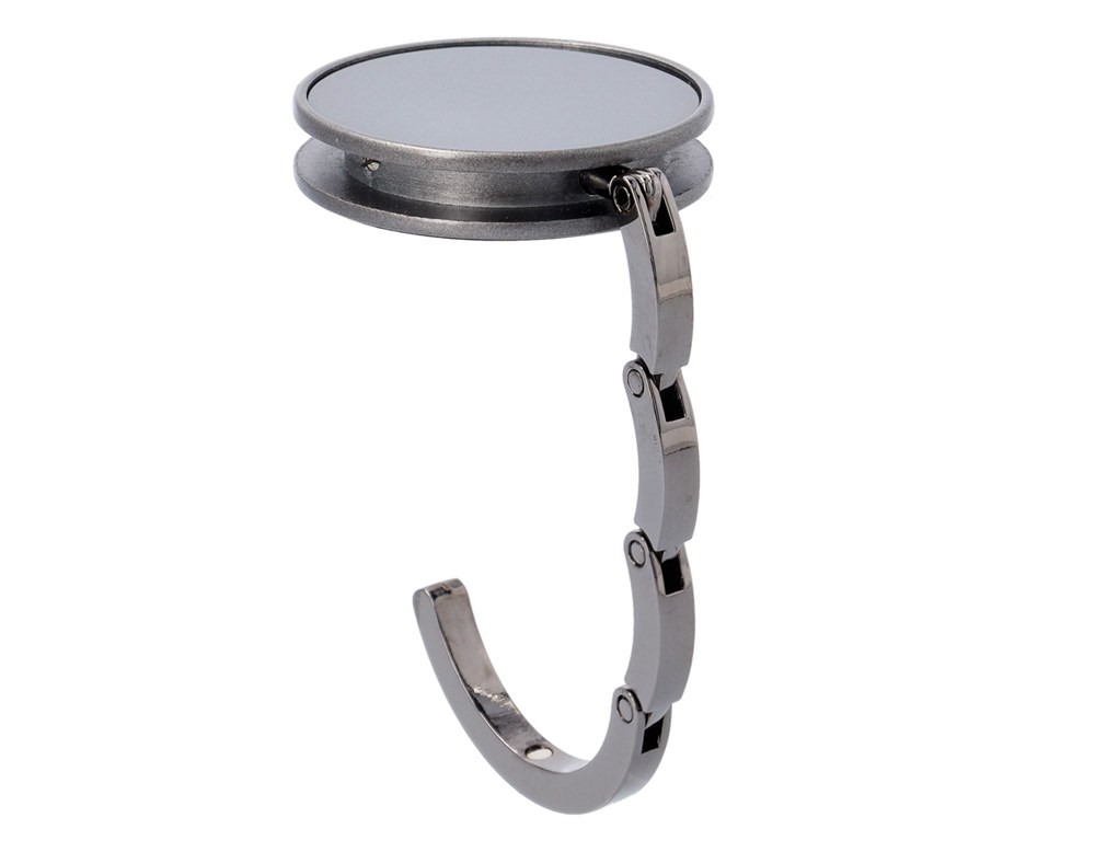 Metalen tashanger met gun metalen afwerking en glimmende plaat. Met magneetsluiting.