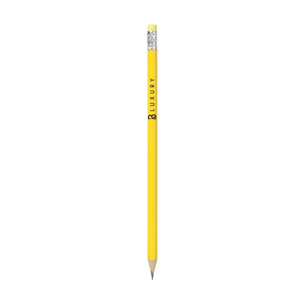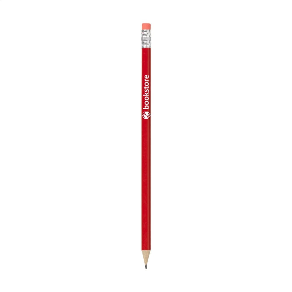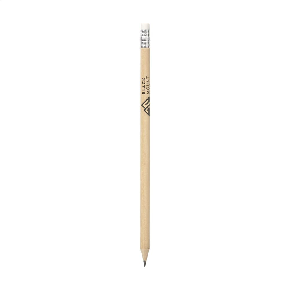 Geslepen, houten (HB) potlood met gum.