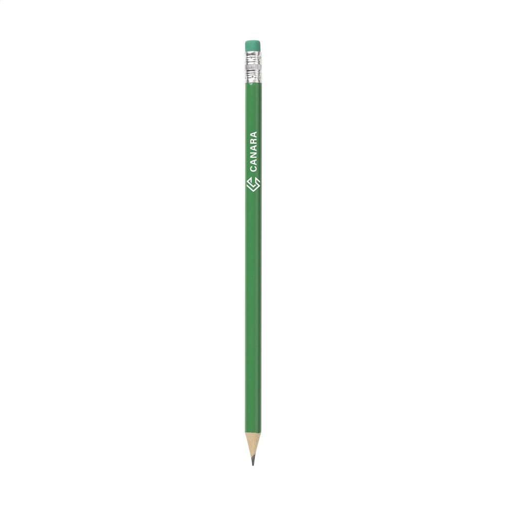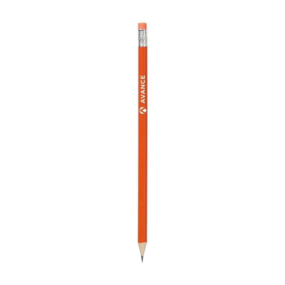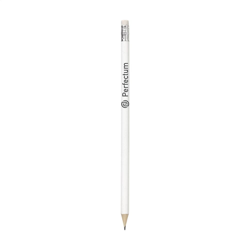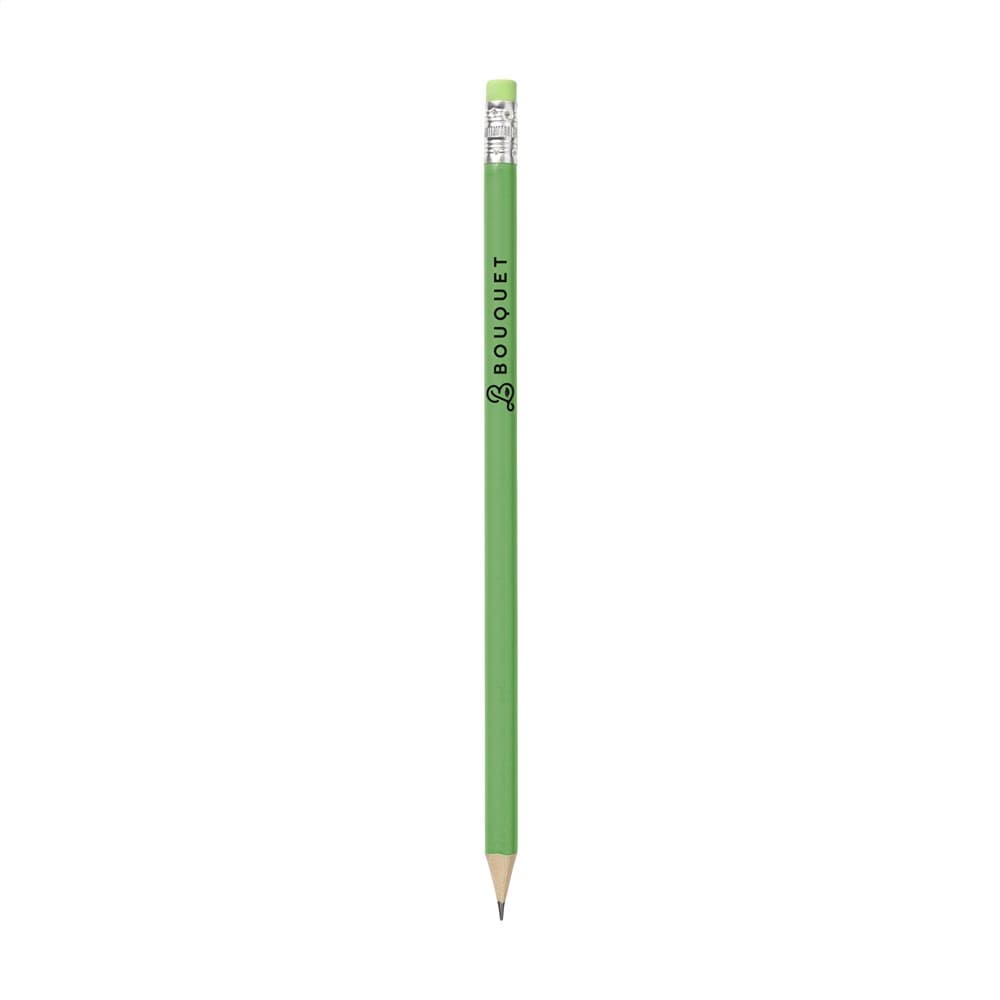 Geslepen, houten (HB) potlood met gum.