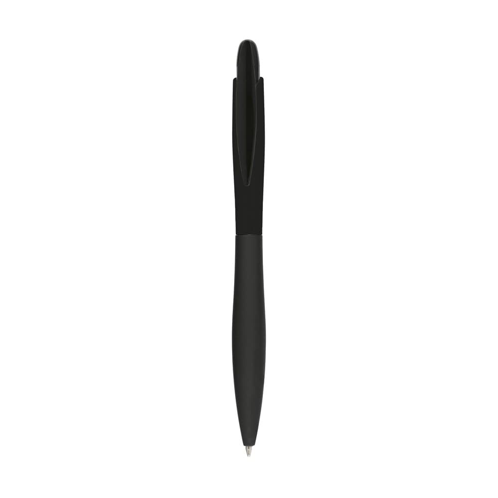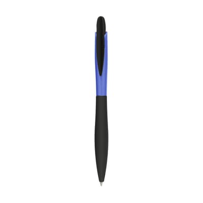 Blauwschrijvende, slanke balpen met gripvast, rubberen voorstuk.