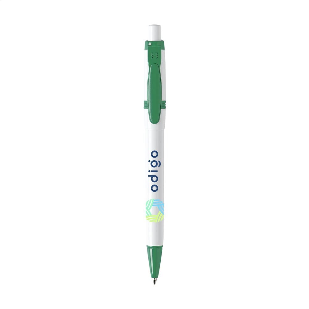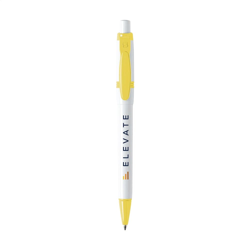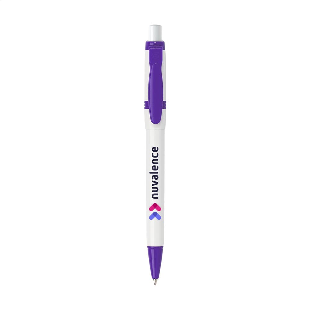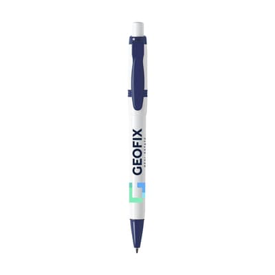 Blauwschrijvende balpen van het merk Stilolinea®. Met gekleurde clip en puntstuk. Made in Italy.