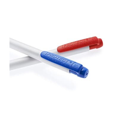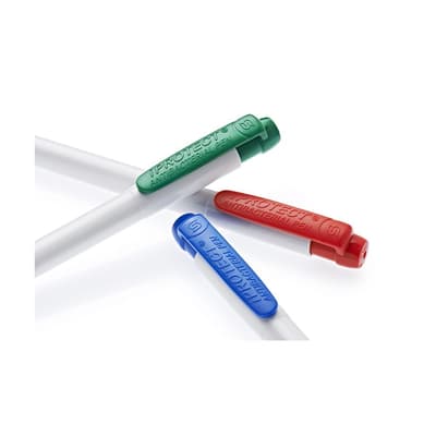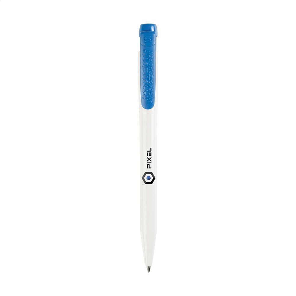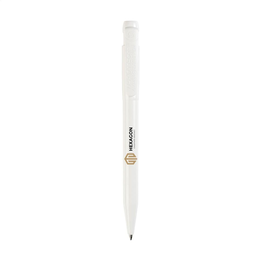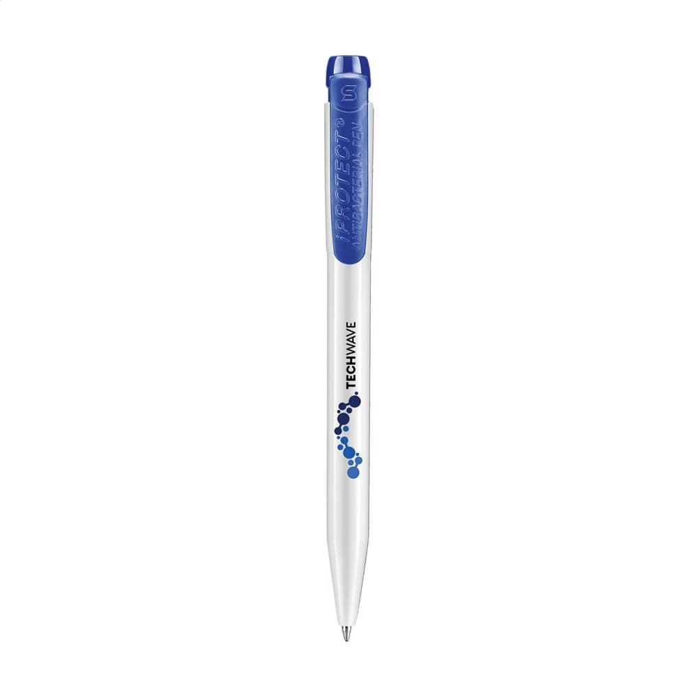 Balpen van het merk Stilolinea®. Met ABS houder, blauwschrijvende vulling en opvallende gekleurde clip/drukknop. Deze pen heeft een antibacteriële werking. Made in Italy.