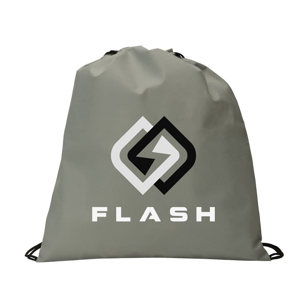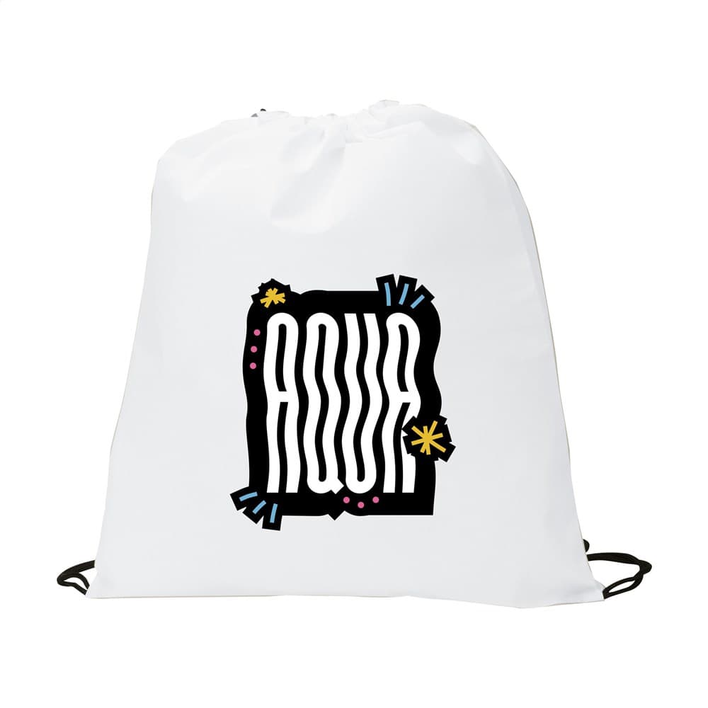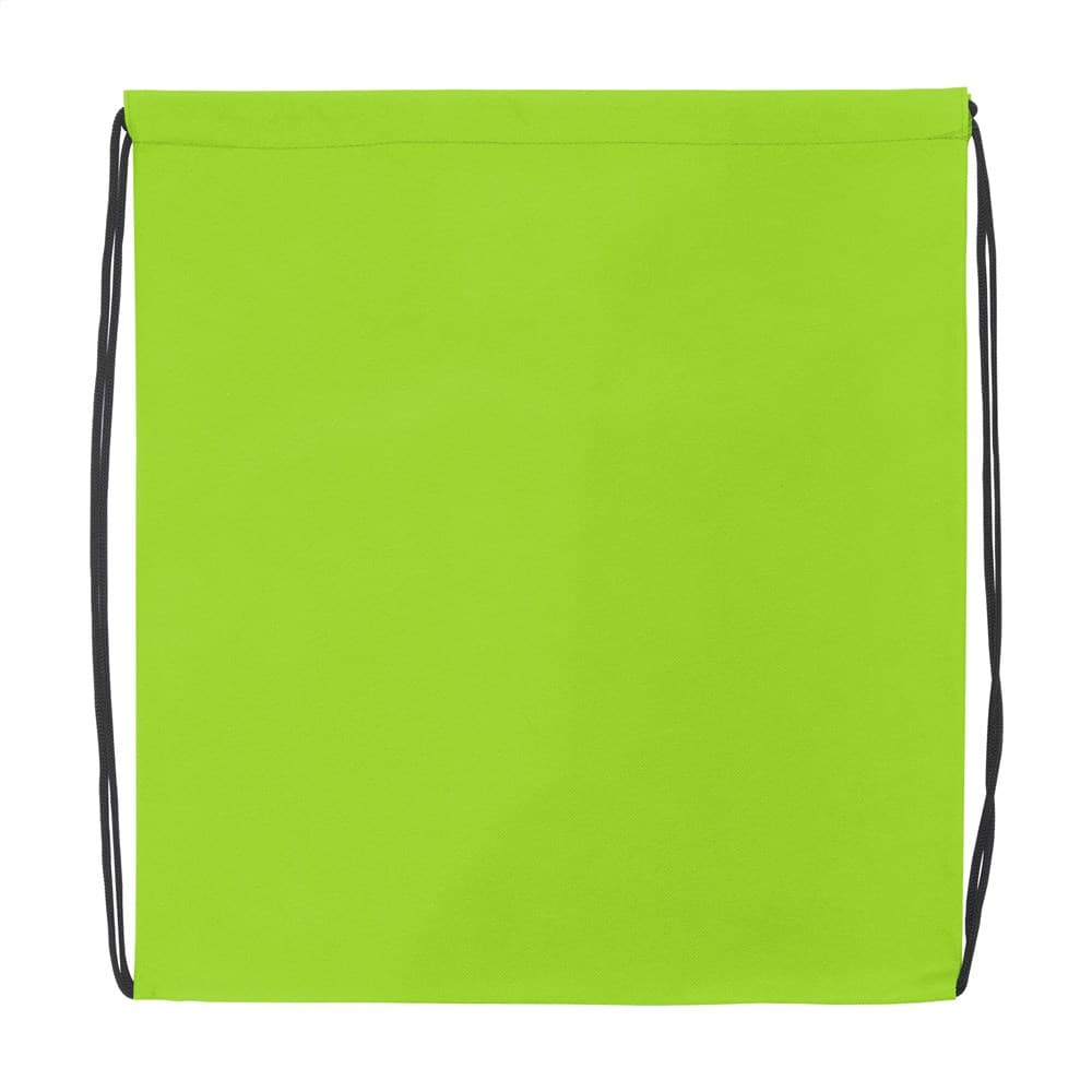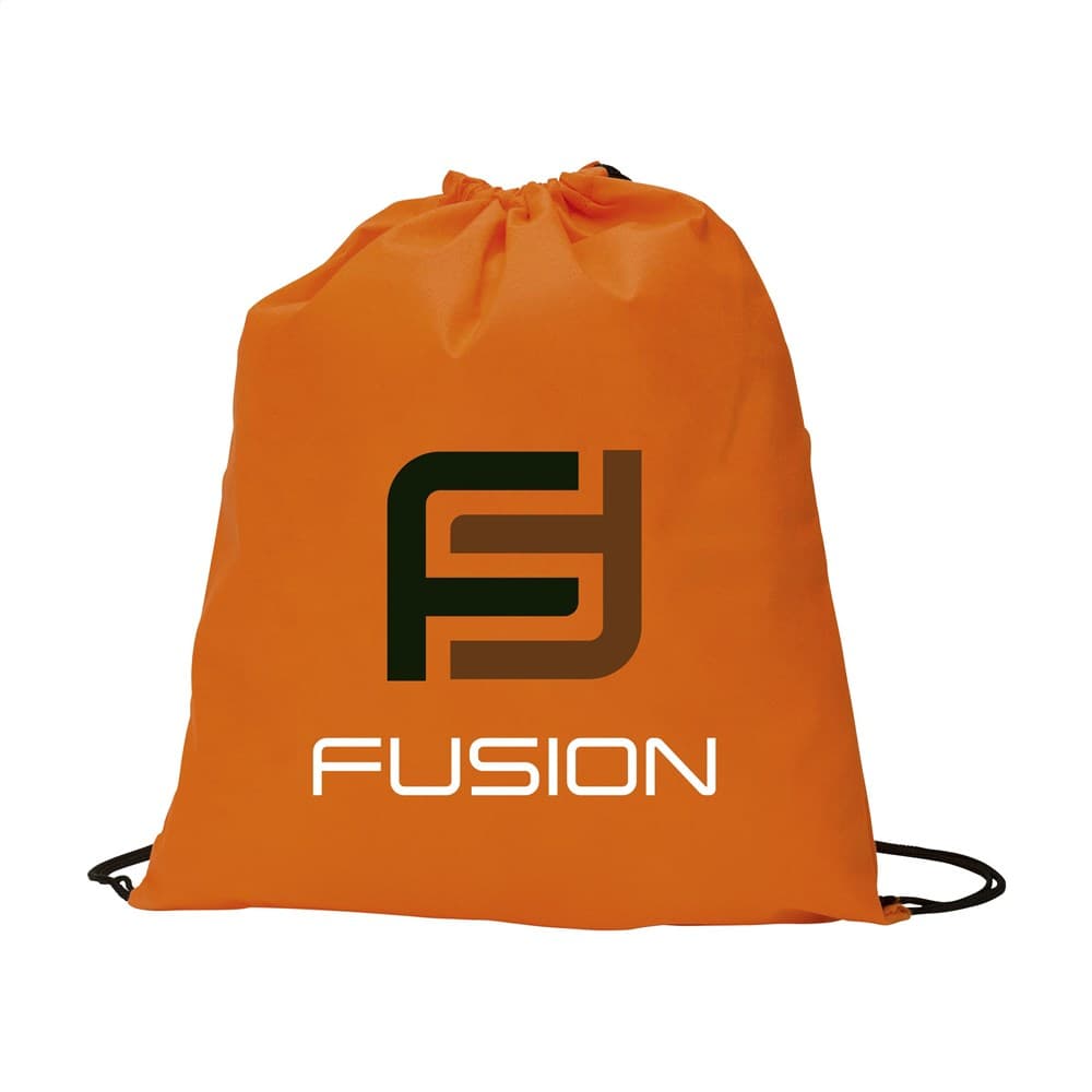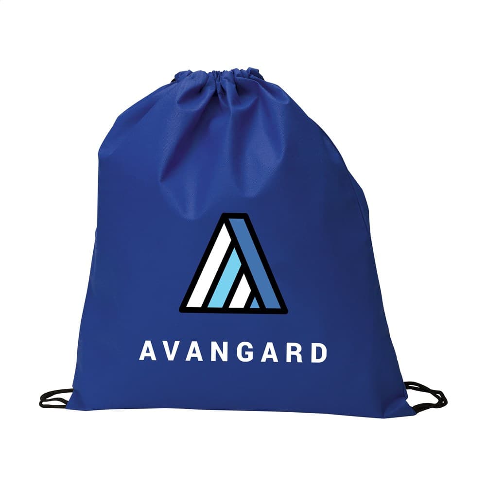 Rugzak van nonwoven materiaal: een superlichte en sterke kunstvezelstof (80 g/m²). Met zwarte aanrijgkoorden. Inhoud ca. 8 liter.