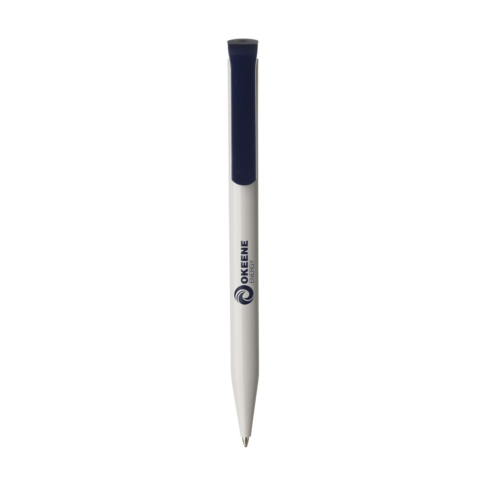 Blauwschrijvende balpen van het merk Senator®. Met gepolijste houder en royale, gekleurde clip/drukknop. Made in Germany.