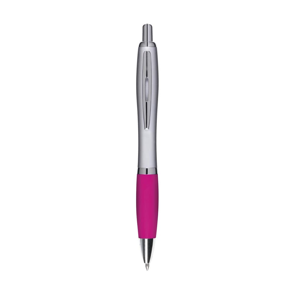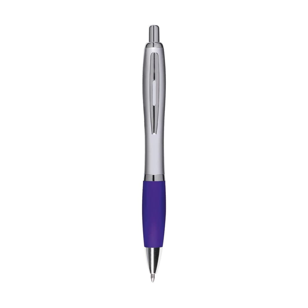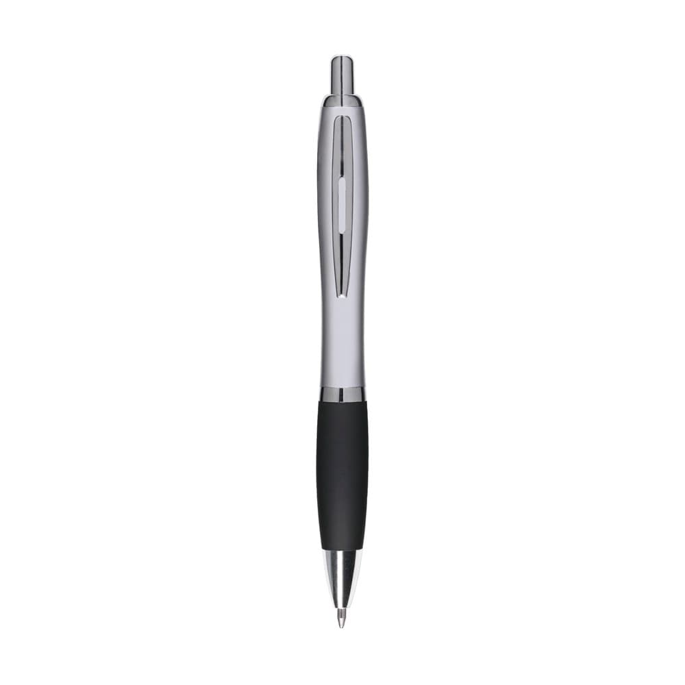 Blauwschrijvende óf zwartschrijvende balpen met gekleurd, gripvast voorstuk en metalen clip.
