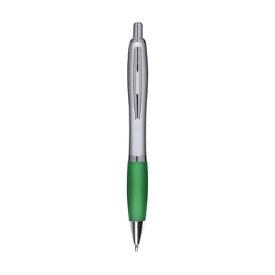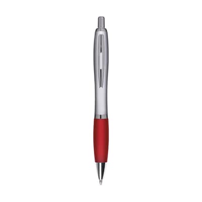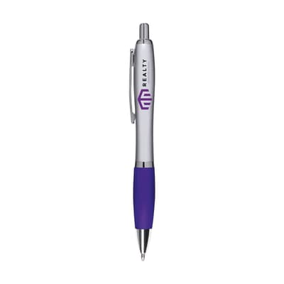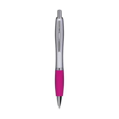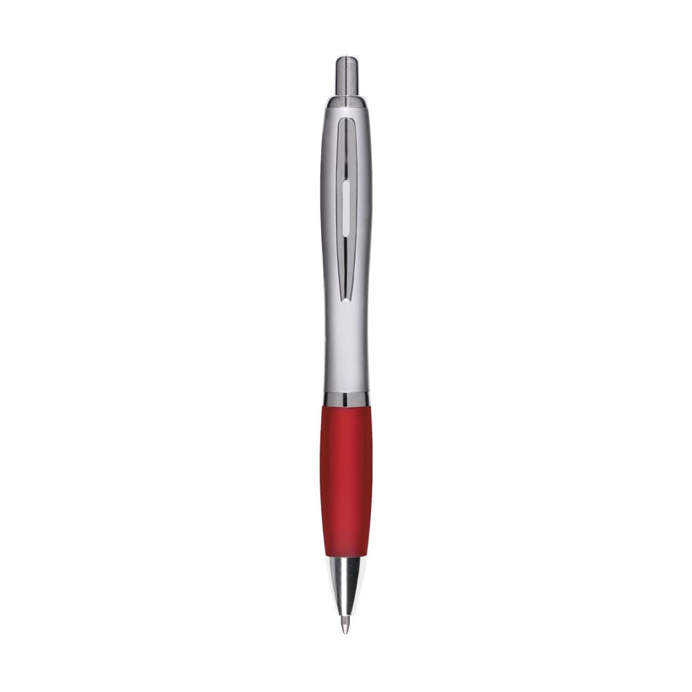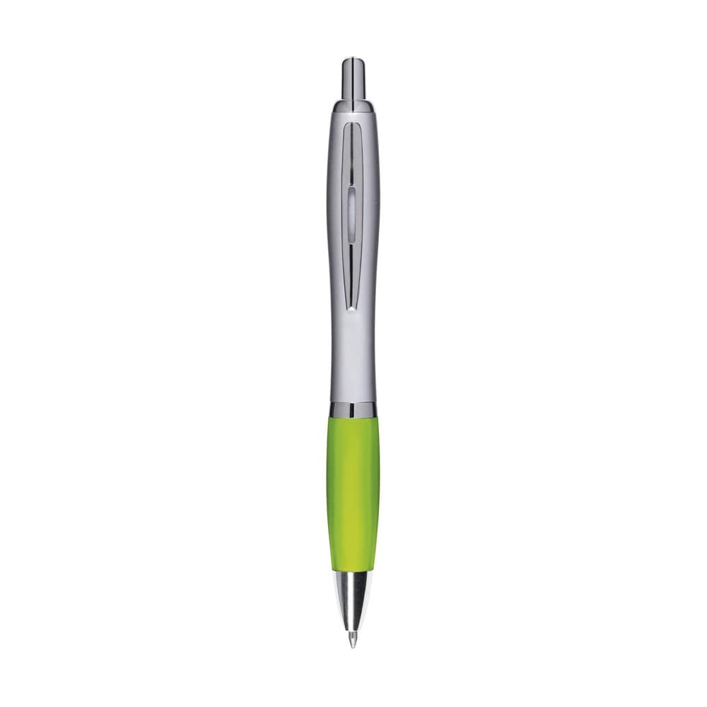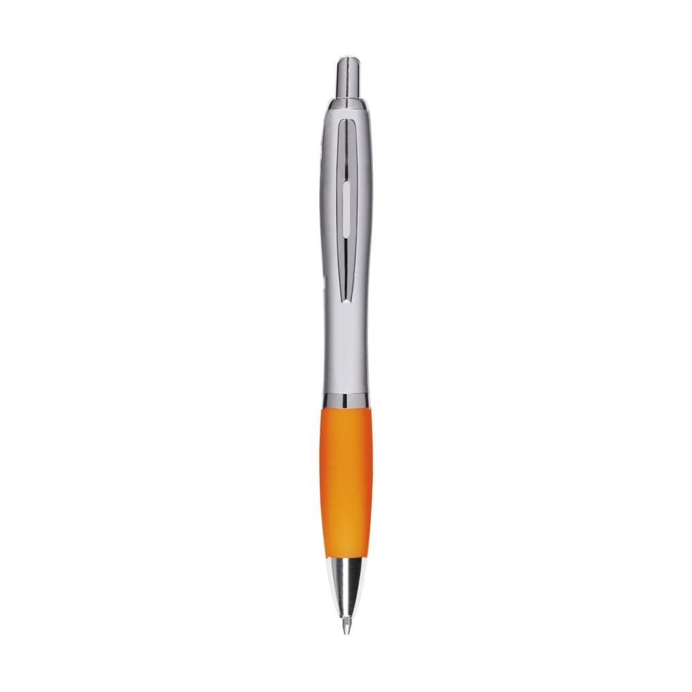 Blauwschrijvende óf zwartschrijvende balpen met gekleurd, gripvast voorstuk en metalen clip.