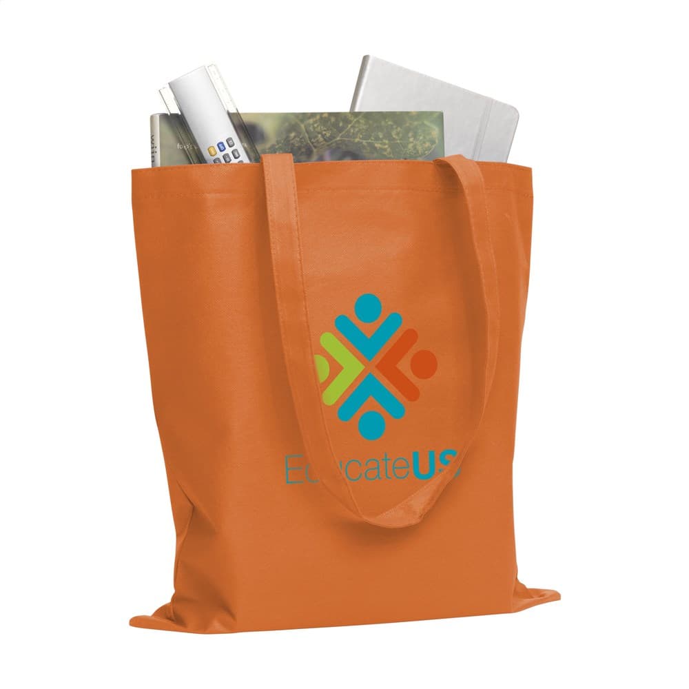 Winkeltas met lange hengsels van nonwoven materiaal (80 g/m²): een superlichte en sterke kunstvezelstof.