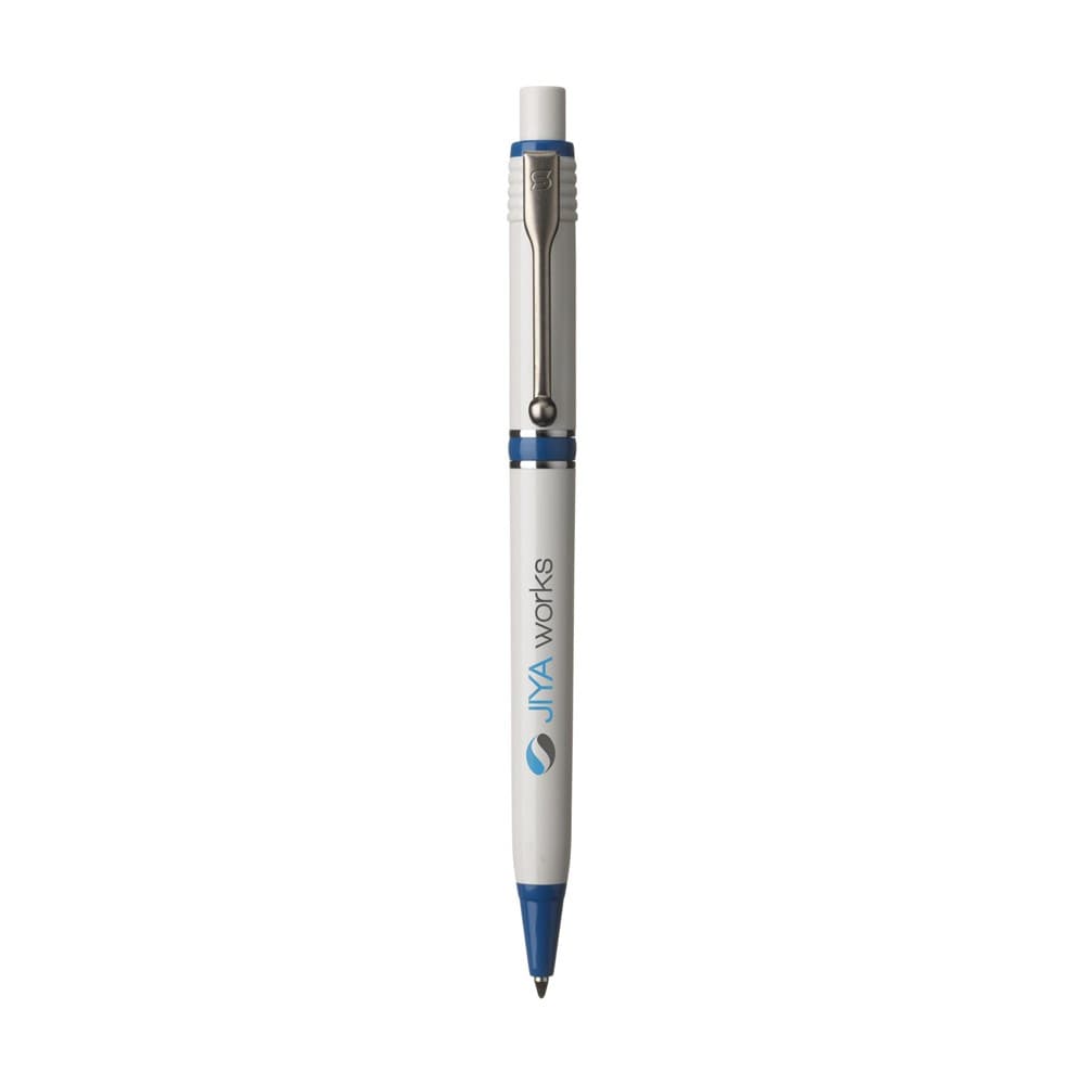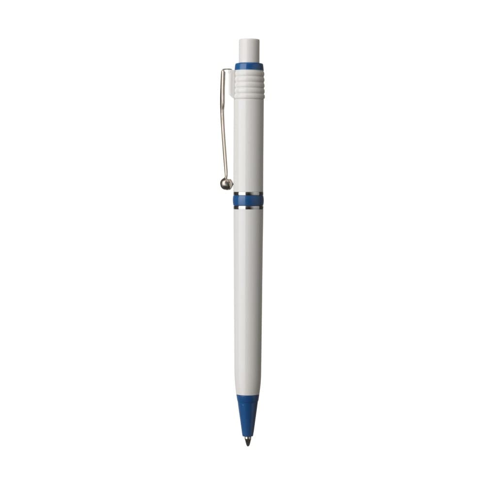 Blauwschrijvende balpen van het merk Stilolinea®. Met kleuraccenten, metalen clip en tussenringen. Made in Italy.