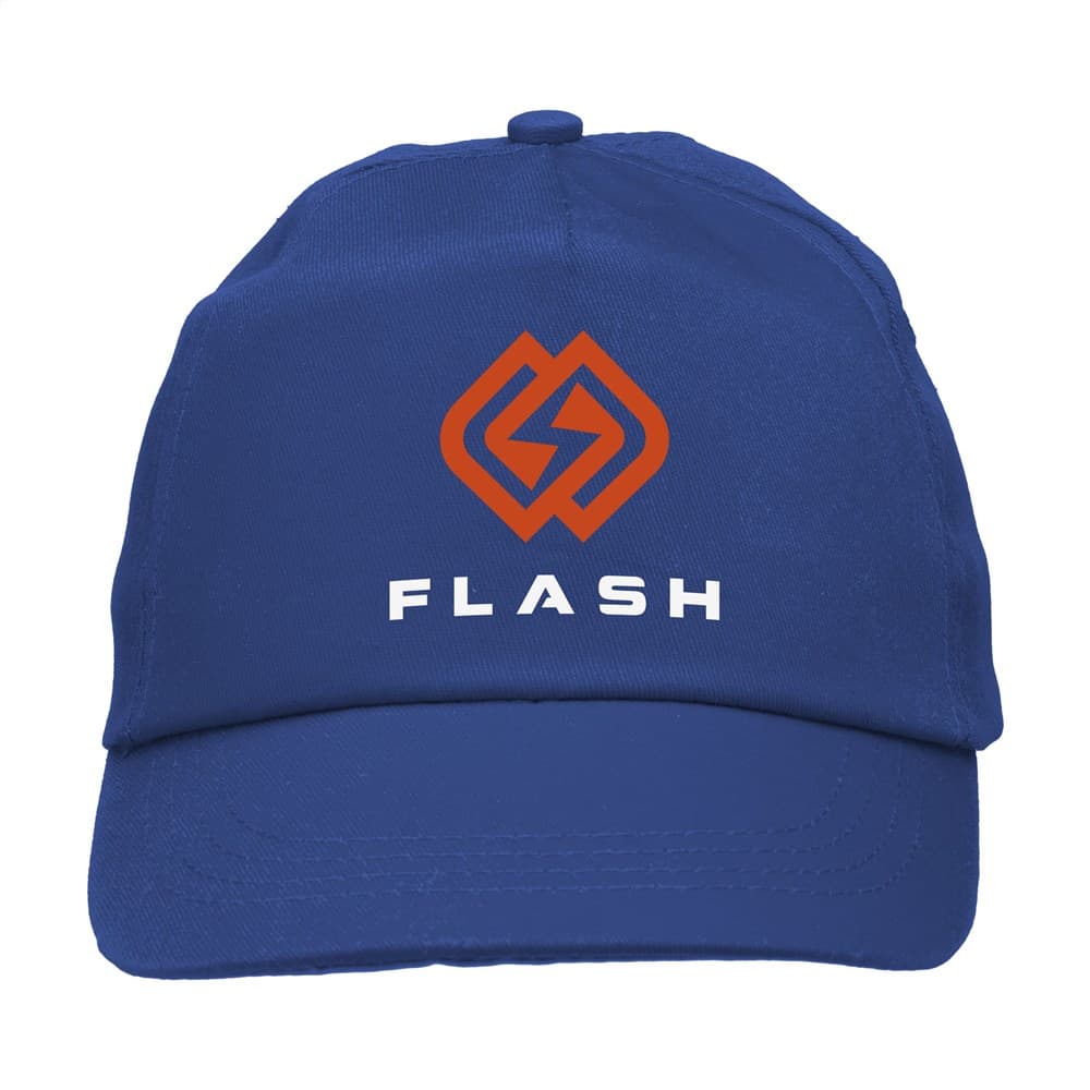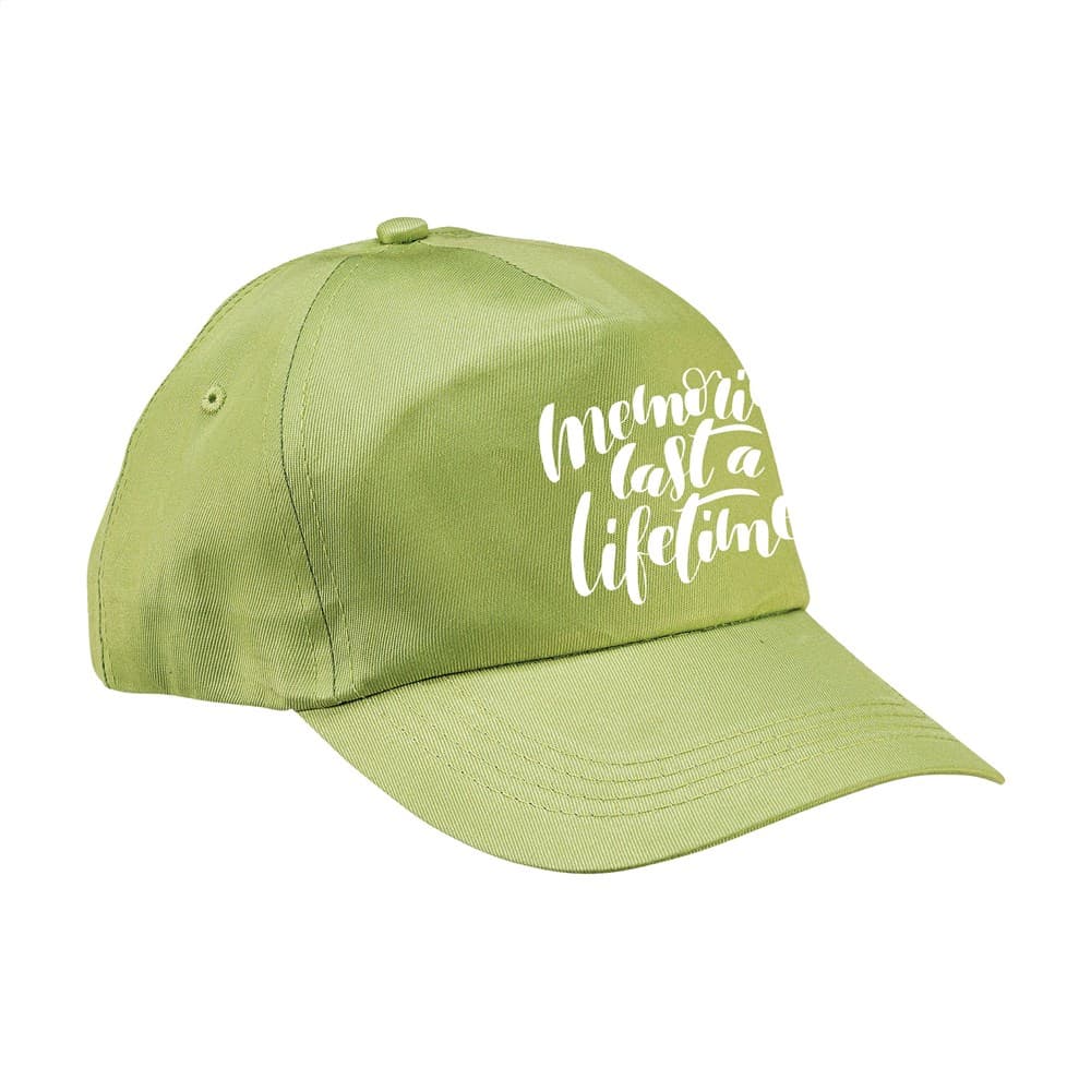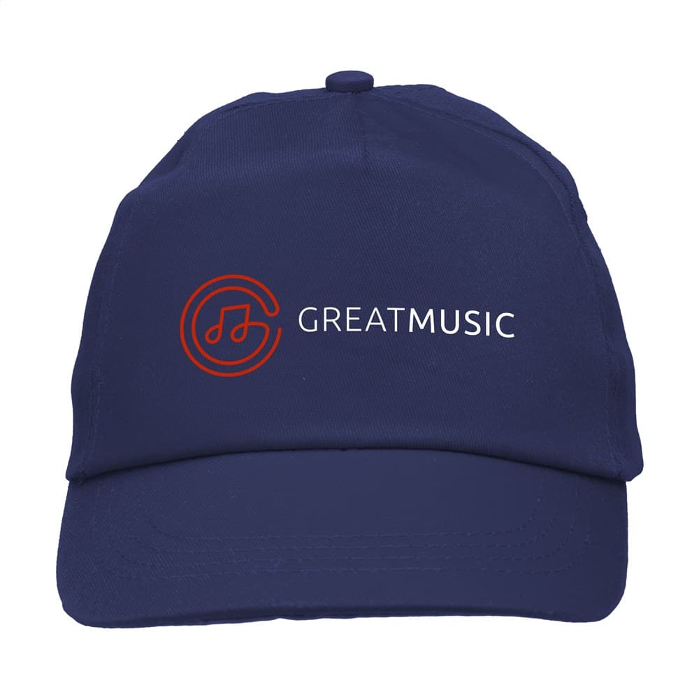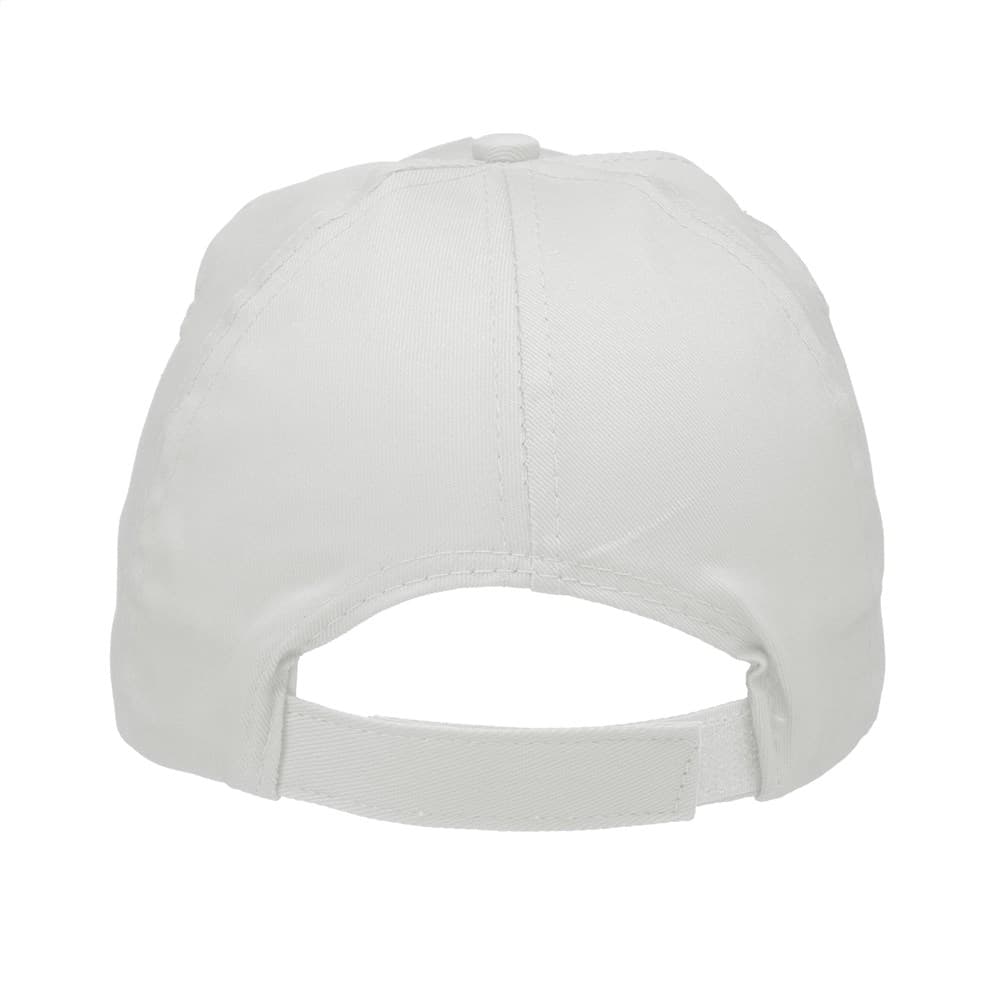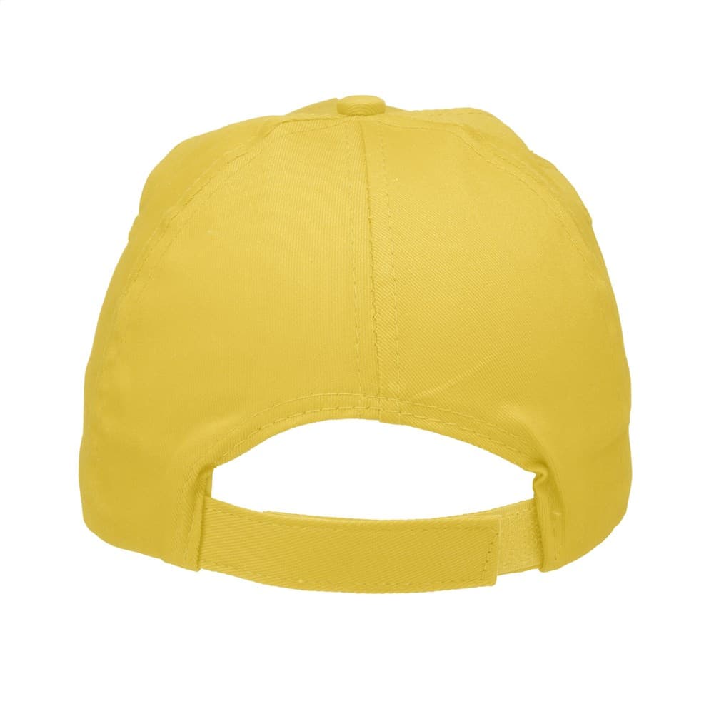 Baseballcap van 100% katoen met voorgevormde klep en klittenbandsluiting.