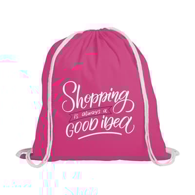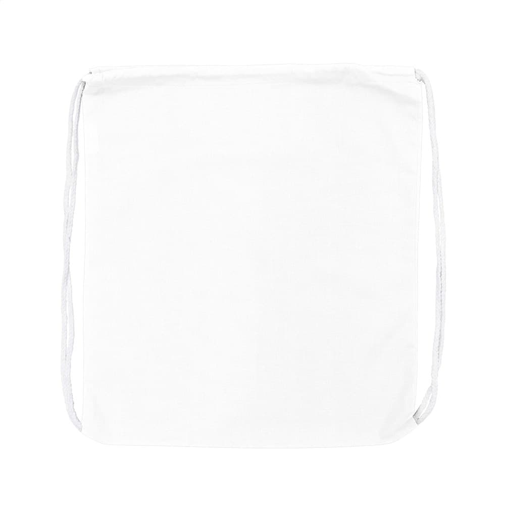 Rugzak van 100% katoen (120 g/m²). Met aanrijgkoorden. Inhoud ca. 8 liter.