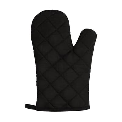 Stevige en dikke ovenwant van 100% katoen. Gewatteerd en gevoerd met molton, aan één zijde doorgestikt en voorzien van een ophanglus.