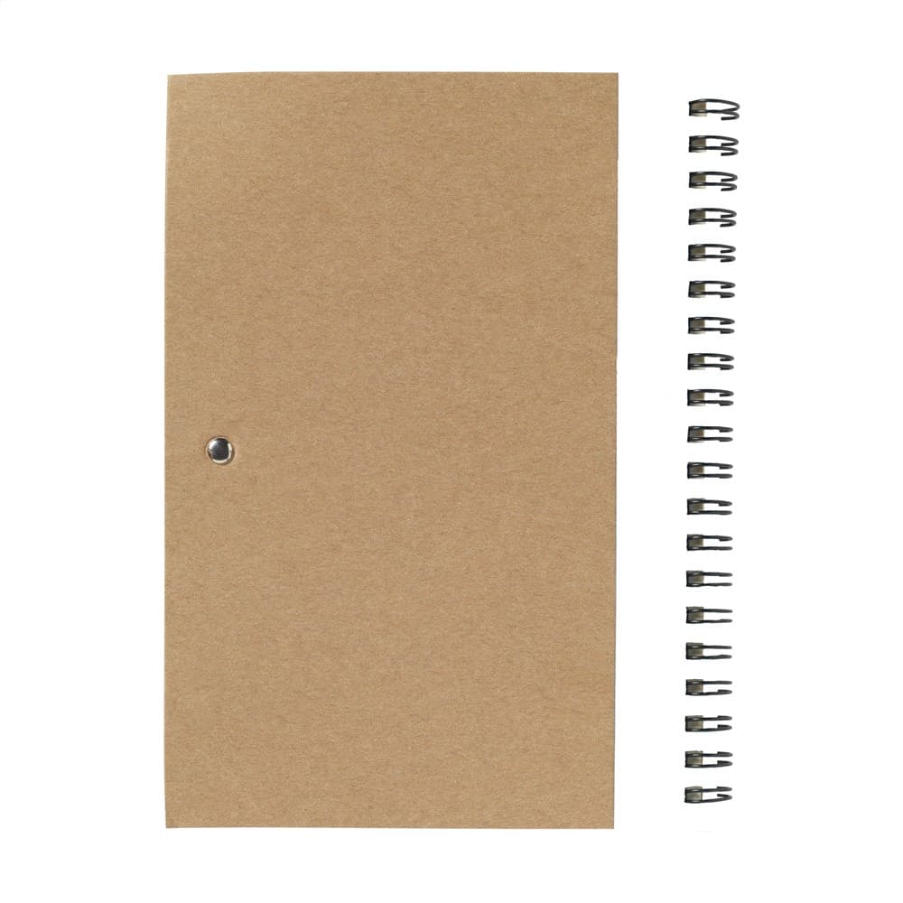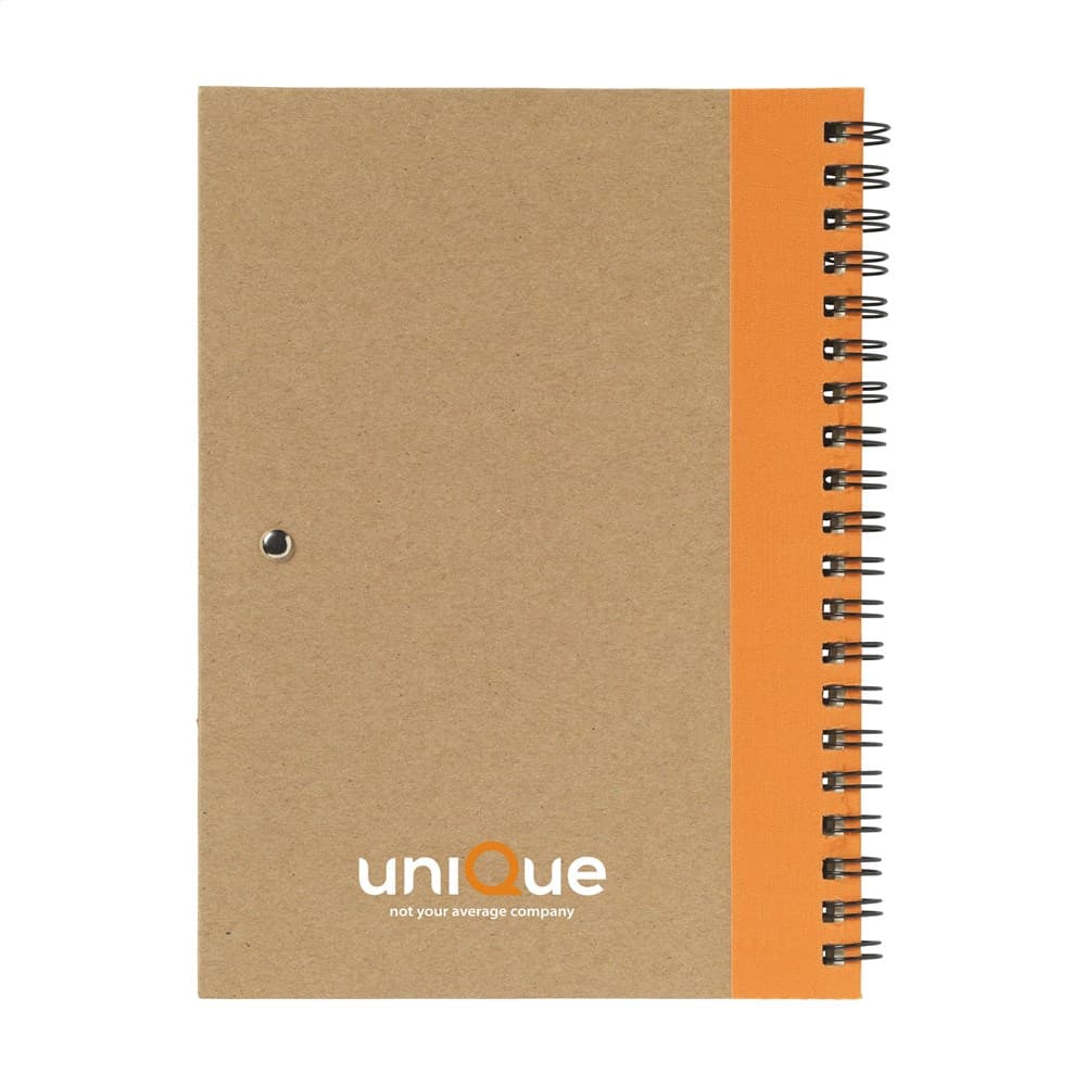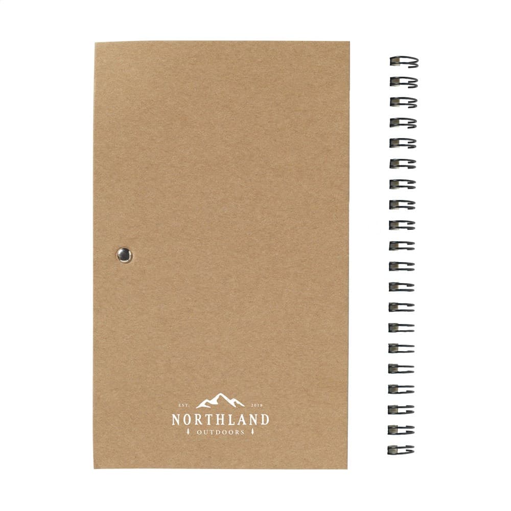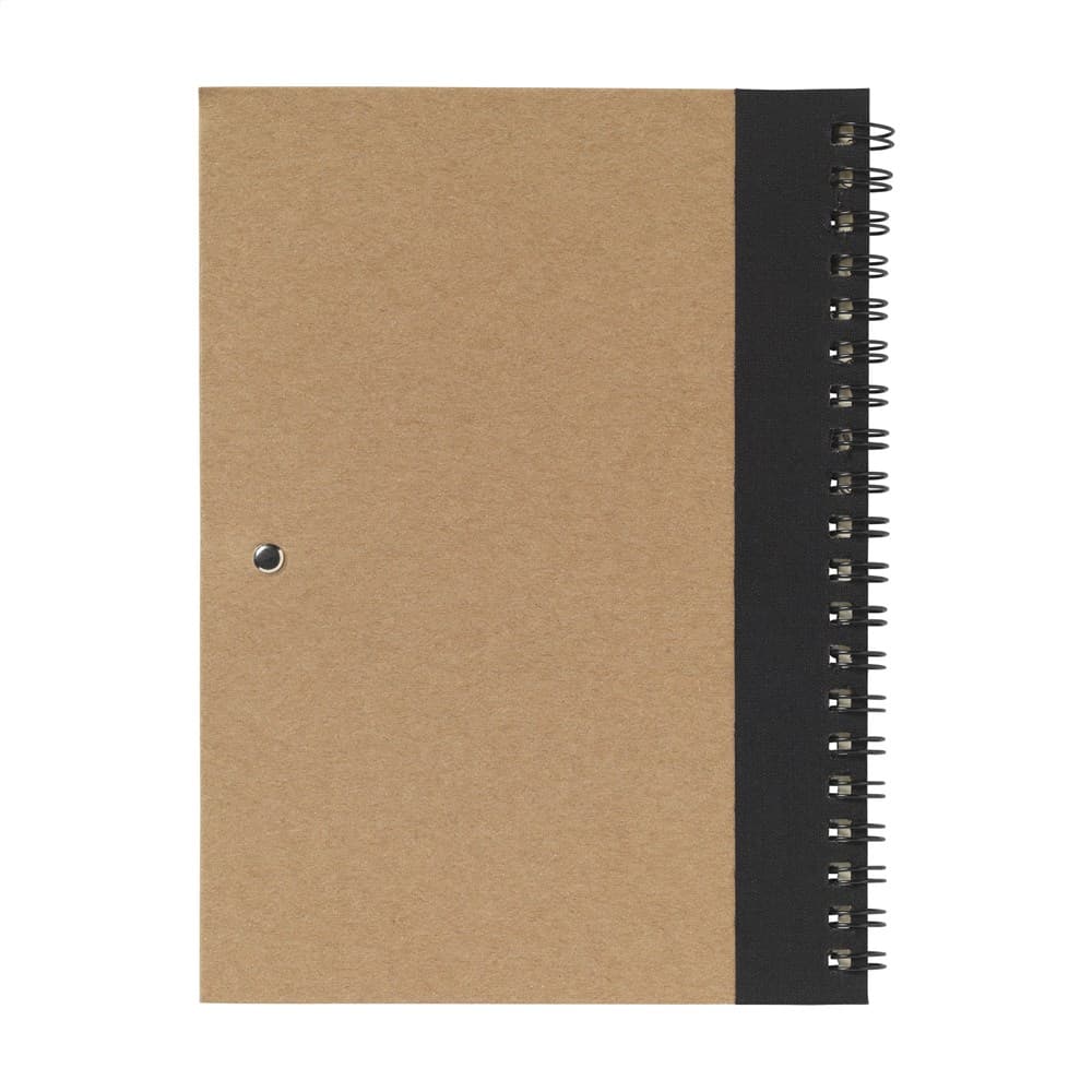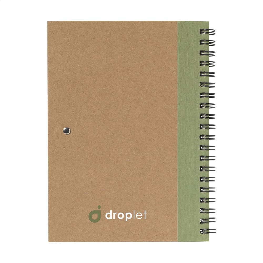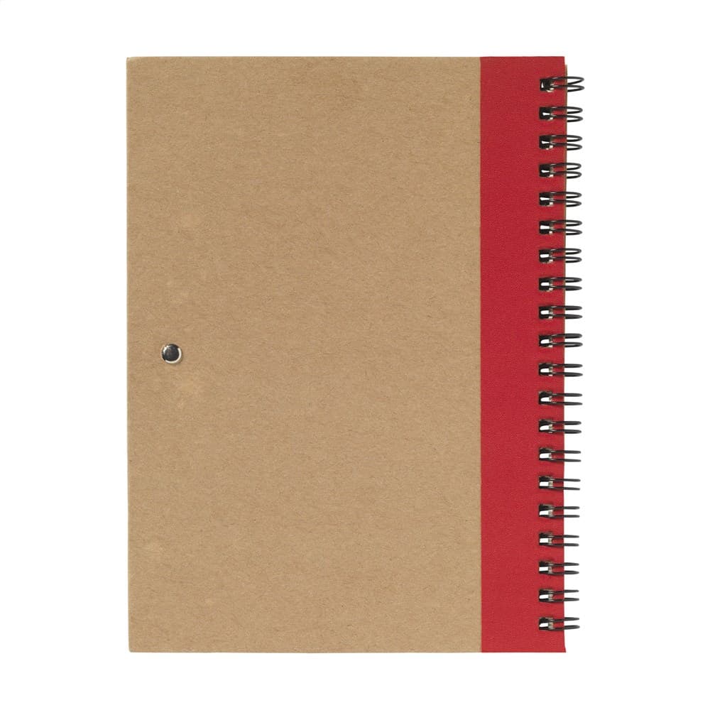 Milieuvriendelijk notitieboekje van gerecycled materiaal met ca. 70 vel/140 pagina's crèmekleurig, gelinieerd papier (70 g/m²), kartonnen omslag. Gebonden in een sterke, metalen wire-o-binding. Incl. blauwschrijvende balpen.