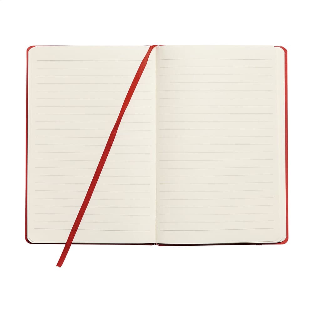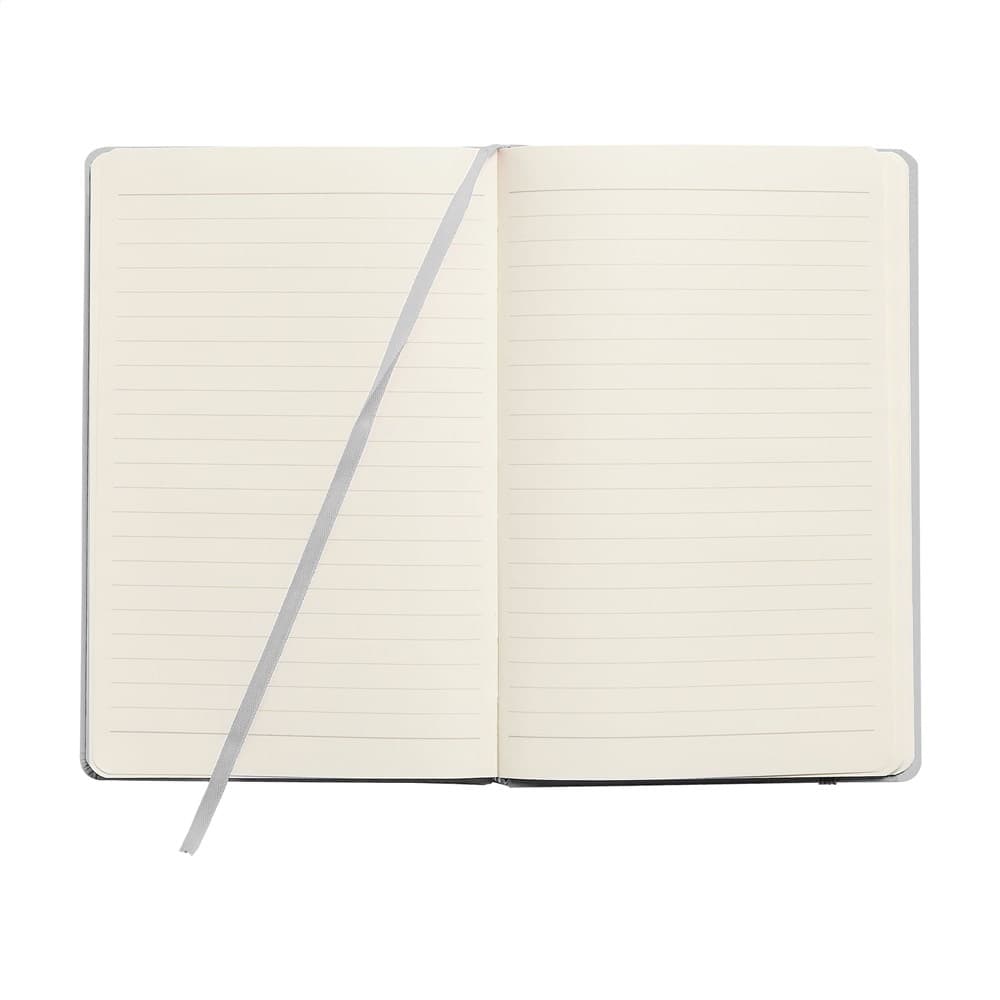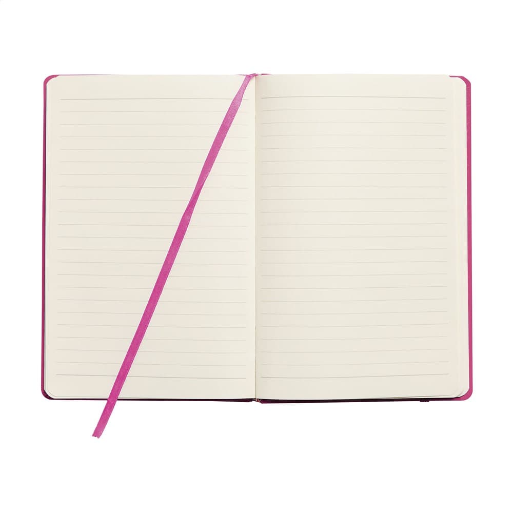 Notitieboek in A5-formaat met ca. 96 vel/192 pagina's crèmekleurig, gelinieerd papier (80 g/m²). Met gebonden rug, harde kaft, opbergvak, sluitelastiek en zijden leeslint.