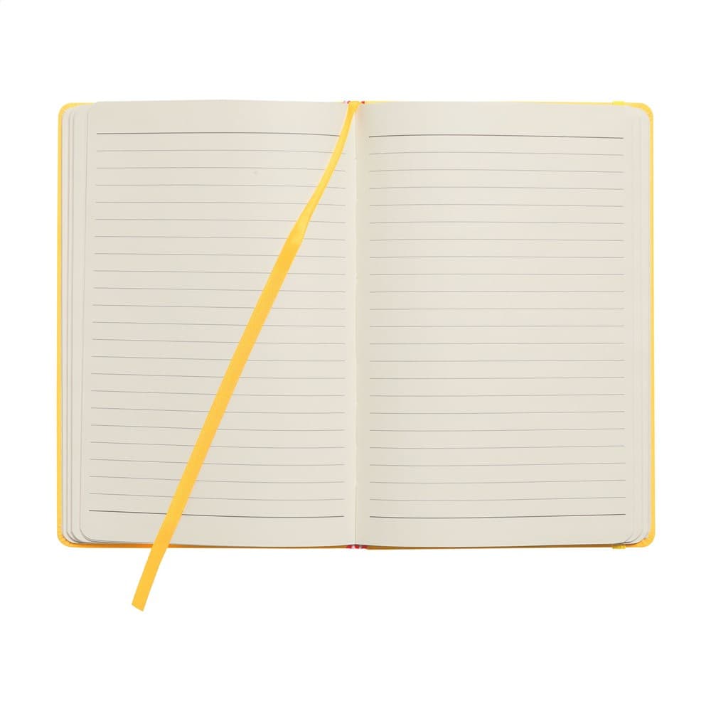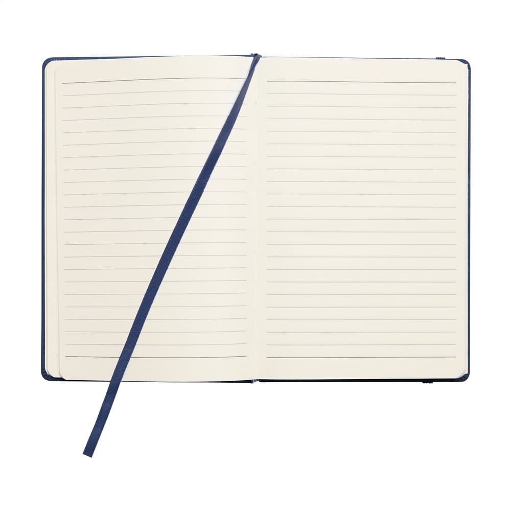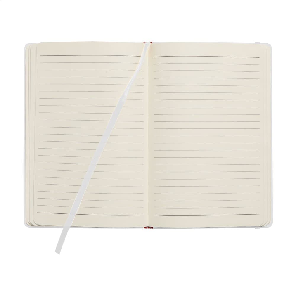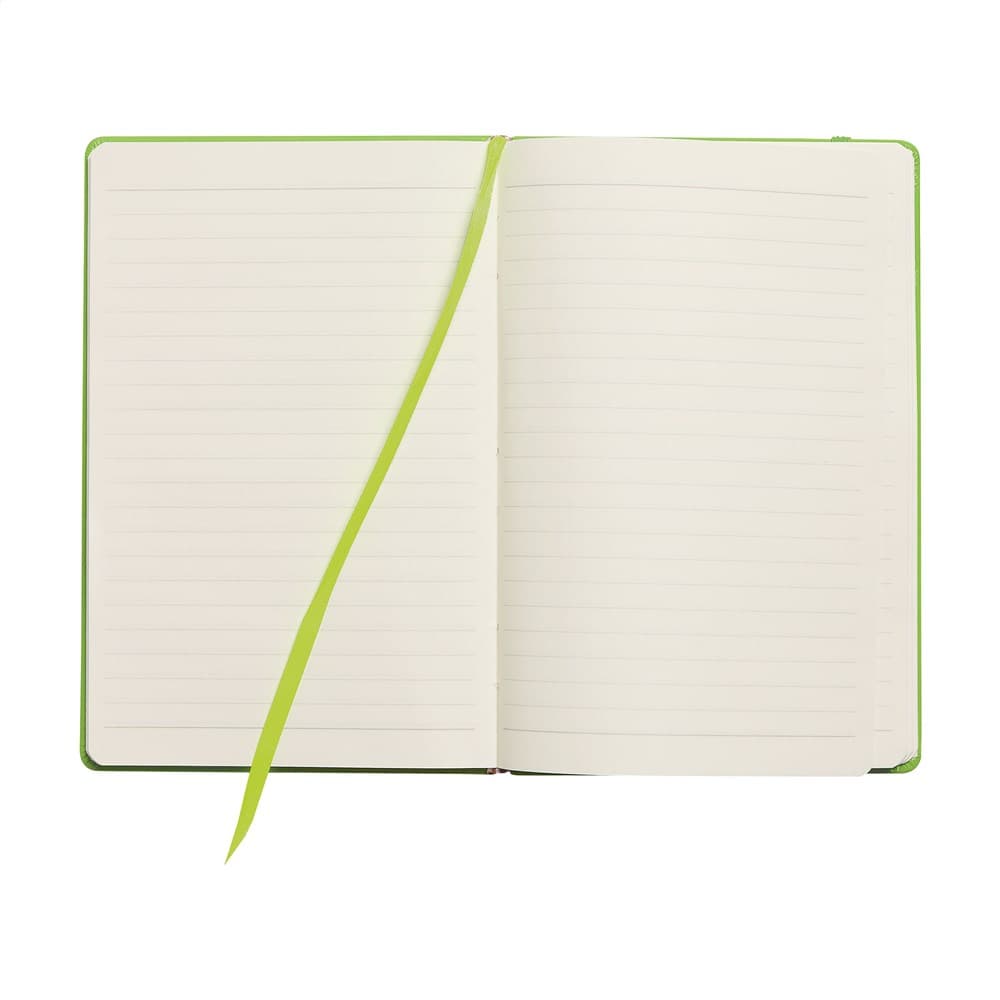 Notitieboek in A5-formaat met ca. 96 vel/192 pagina's crèmekleurig, gelinieerd papier (80 g/m²). Met gebonden rug, harde kaft, opbergvak, sluitelastiek en zijden leeslint.