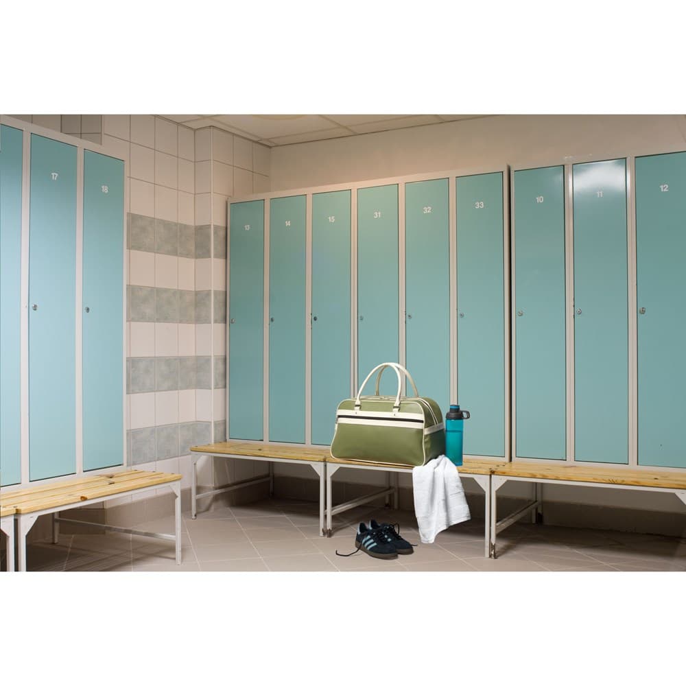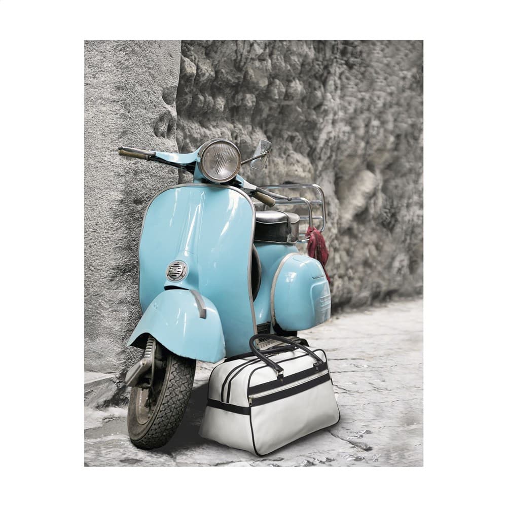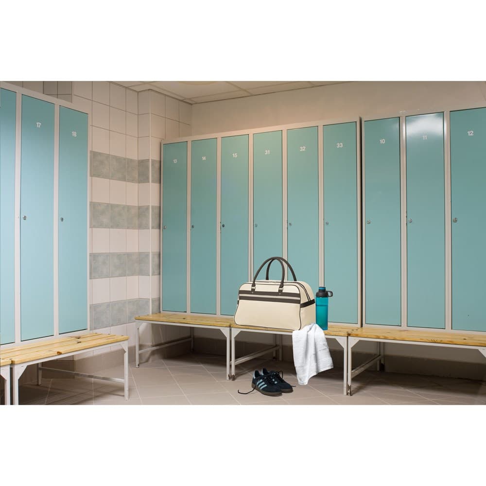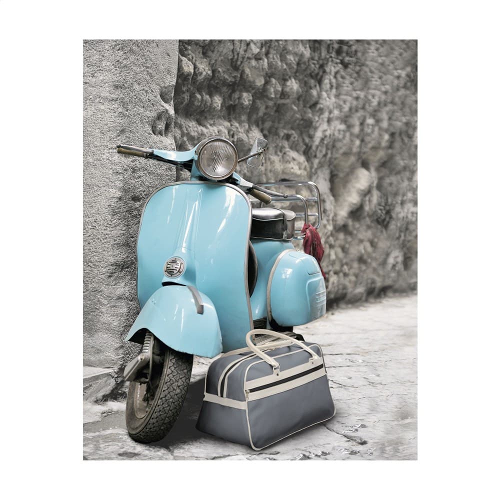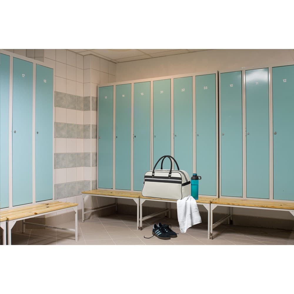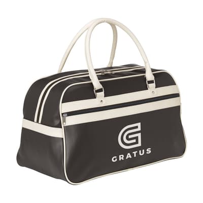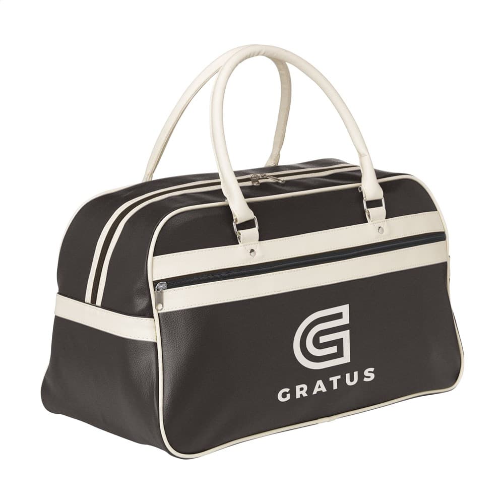 PVC/PU sporttas in jaren '70 look met gevoerde binnenzijde, hoofdvak en ritsvak, 2 stevige handgrepen, inlegbodem en beschermnoppen. Afgewerkt met hoogwaardige materialen die een lange levensduur garanderen. Inhoud ca. 21,5 ltr.