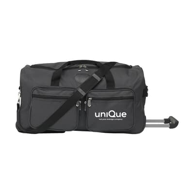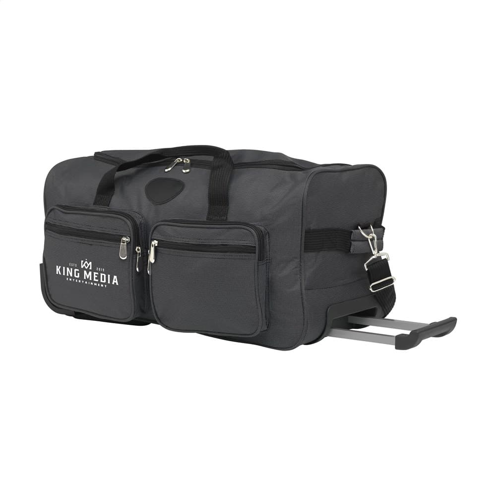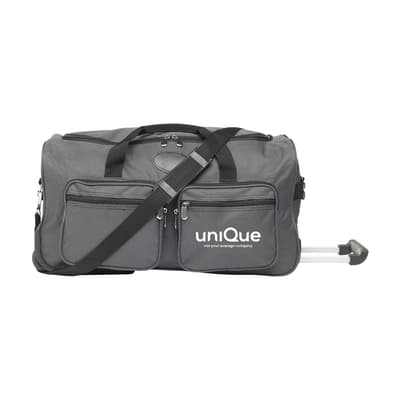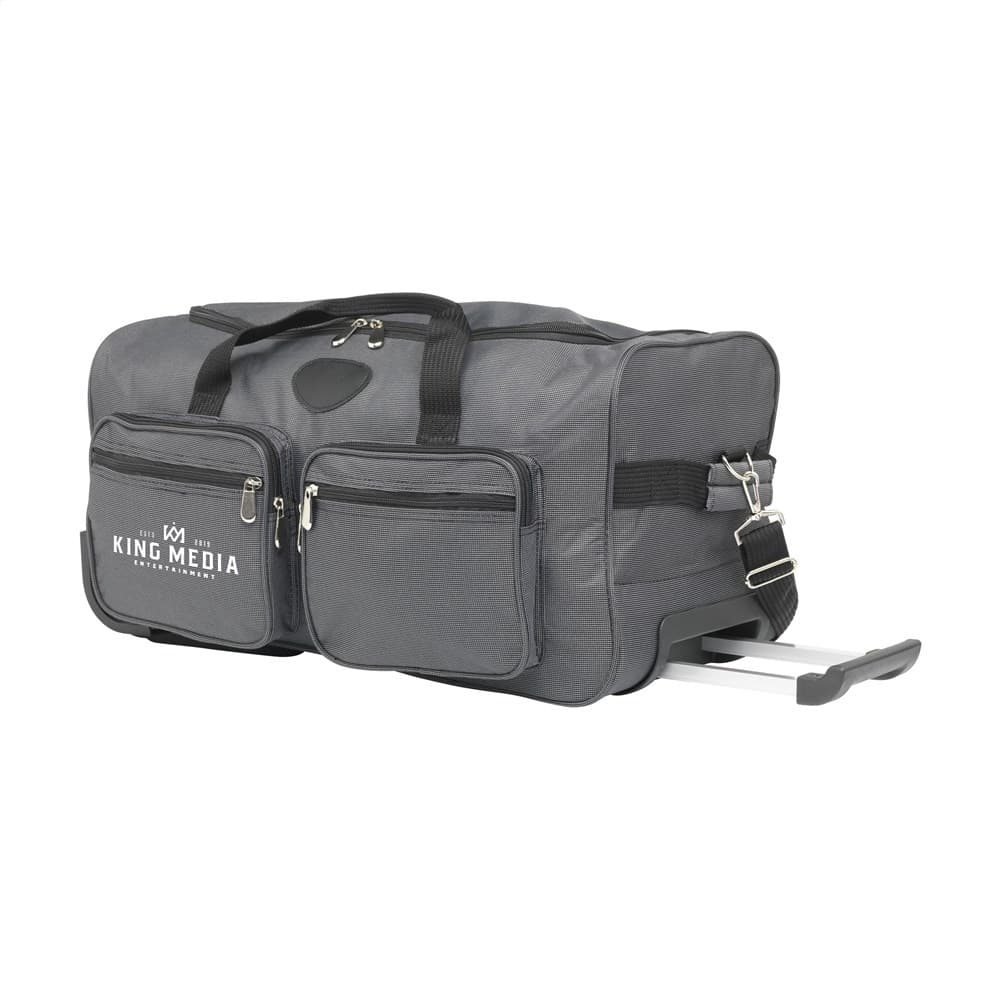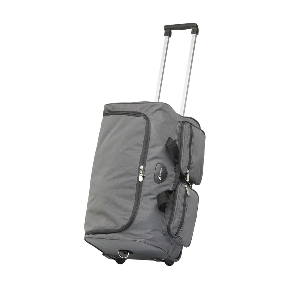 Exclusieve, praktische koffer met uitschuifbare handgreep, 2 wielen, royaal hoofdvak en 4 ritsvakken aan de voorzijde. Uitgevoerd in waterafstotend, duotone 600D polyester in carréstructuur en bekleed met een chique voering. Inhoud 31,5 liter.