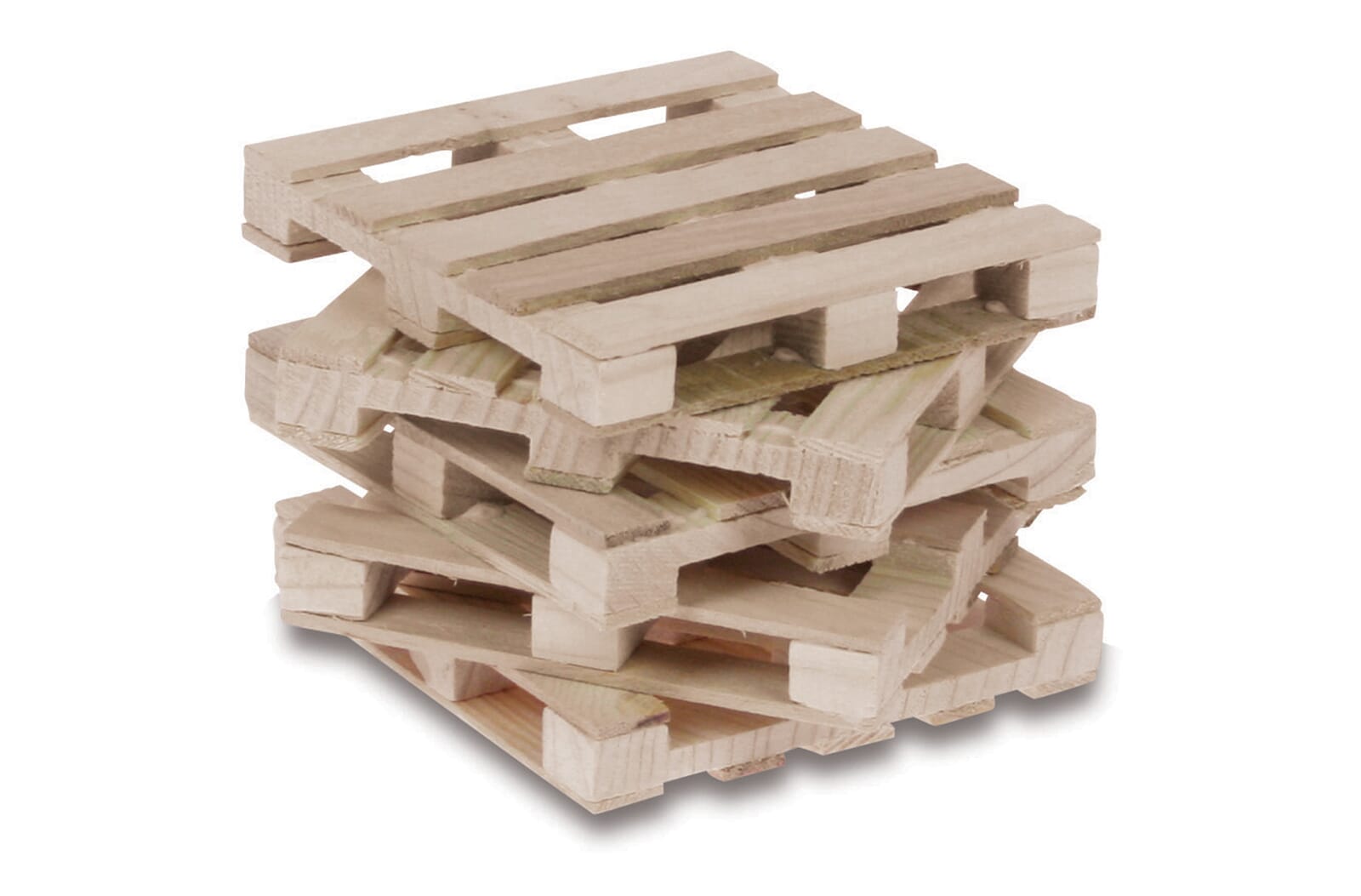 Houten pallet voor het kubusblok. Pallet wordt onder het kubusblok gelijmd.