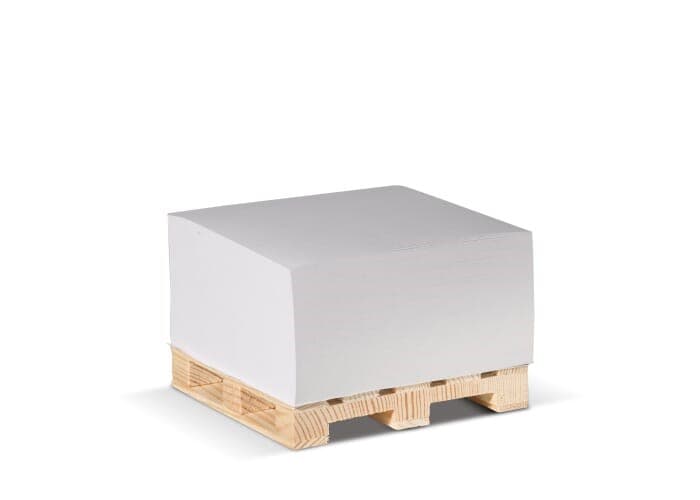 Papierkubus met FSC-wit papier op houten pallet. Ideaal voor thuis of op kantoor. Ongeveer 420 vellen. Elke kubus is krimpverpakt.