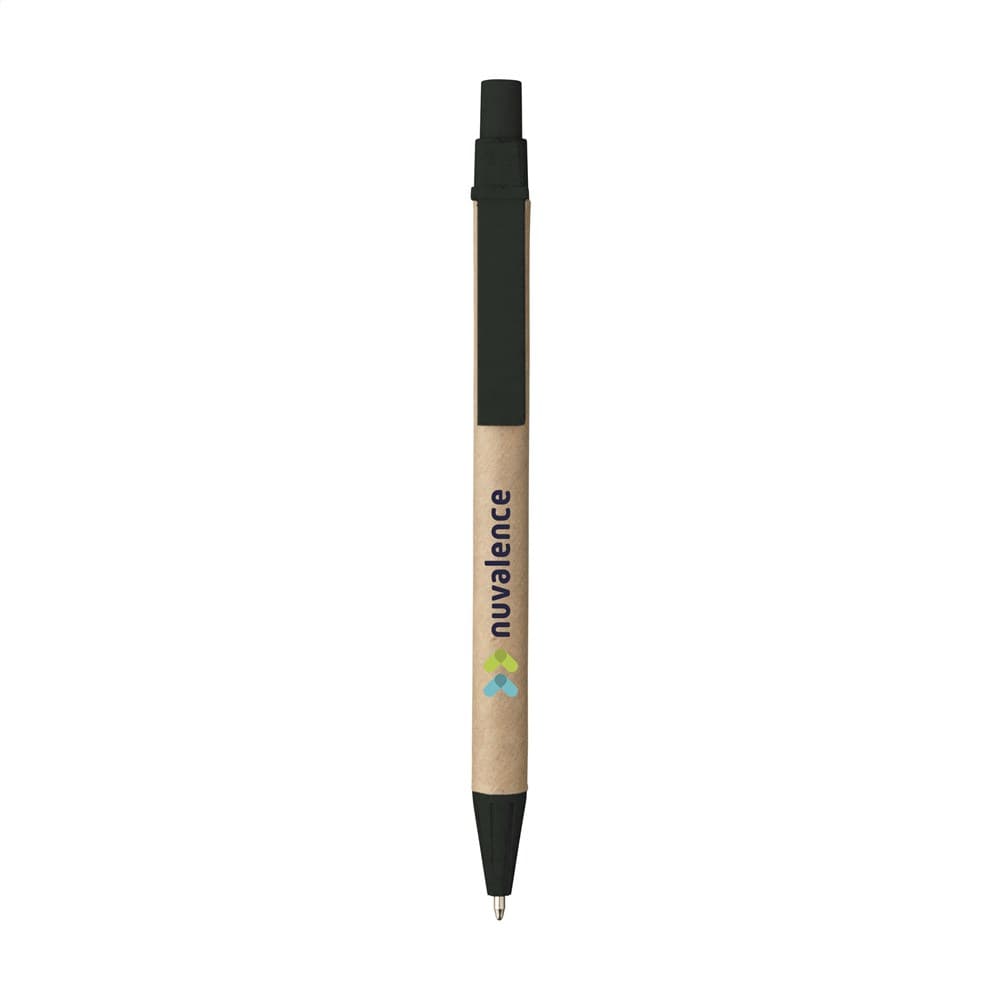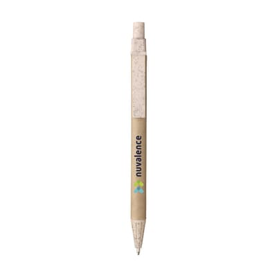 WoW! Deze blauwschrijvende balpen is een cool en duurzaam alternatief voor de reguliere plastic pen. De body van deze pen is gemaakt van opgerold gerecycled papier en restafval uit de tarweproductie. Omdat er veel tarwe wordt verbouwd voor de voedingsindustrie, ontstaat er ook veel afval in de vorm van blad en riet. Door de productie van deze pen krijgt dit afval een tweede leven. Deze pen behoort tot onze eco pennen collectie – schrijf duurzaam en maak een bewuste keuze!