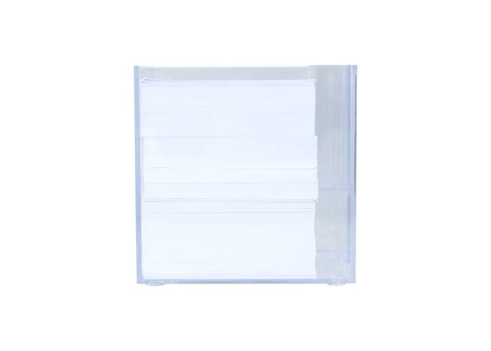 Papierkubus met FSC-wit papier in kubusdoos met vier transparante vakken voor kantoorartikelen. Ideaal voor thuis of op kantoor. Ongeveer 800 vellen. Elke kubus is krimpverpakt.