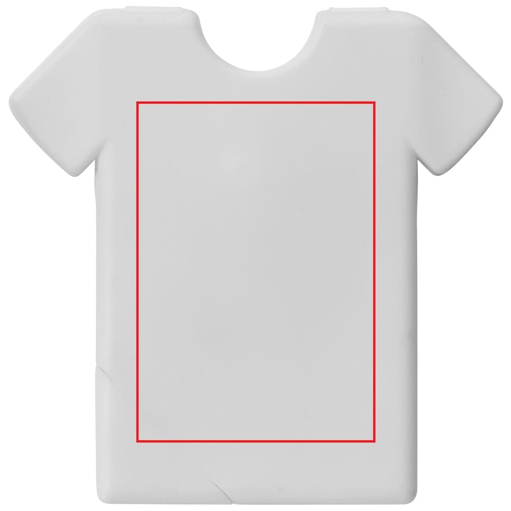 Pepermuntdoosje in de vorm van een T-shirt. Opening van het doosje aan de onderkant van het T-shirt. Inhoud: circa zeven gram suikervrije pepermuntjes. Geschikt voor full-colour digitaal druk.