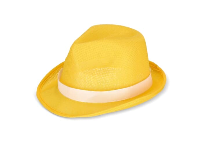 Een veelzijdige polyester hoed in verschillende promotionele en felle kleuren. Perfect voor zonnige dagen, biedt stijl en bescherming tegen de zon. De band maakt gepersonaliseerde ontwerpen mogelijk.