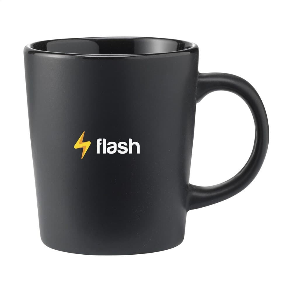 Opvallende mok in een aantrekkelijk design. Van hoogwaardig keramiek en voorzien van een matte toplaag. Inhoud 250 ml. De opdruk is vaatwasmachine getest en gecertificeerd: EN 12875-2.