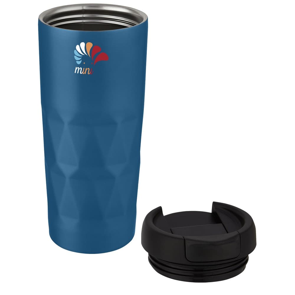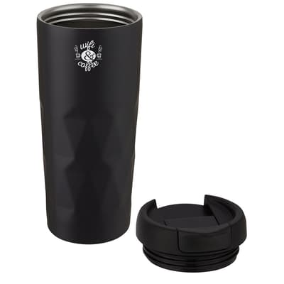 Dubbelwandige koperen vacuüm geïsoleerde beker met opschroefbaar lekdicht deksel met een golvend geometrisch ontwerp. Het geïsoleerde 18/8 roestvrijstaal houdt dranken meerdere uren warm of koud. BPA-vrij, getest en goedgekeurd volgens de Duitse voedselveiligheidswetgeving (LFGB) en getest op ftalaten volgens de REACH-regelgeving. Inhoud 450 ml. Handwas aanbevolen. Geleverd in een gerecycled kartonnen geschenkverpakking.